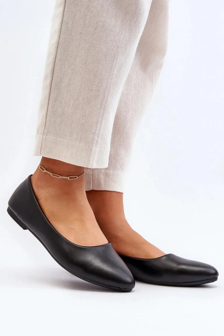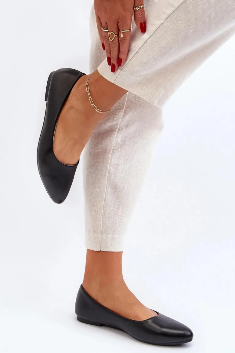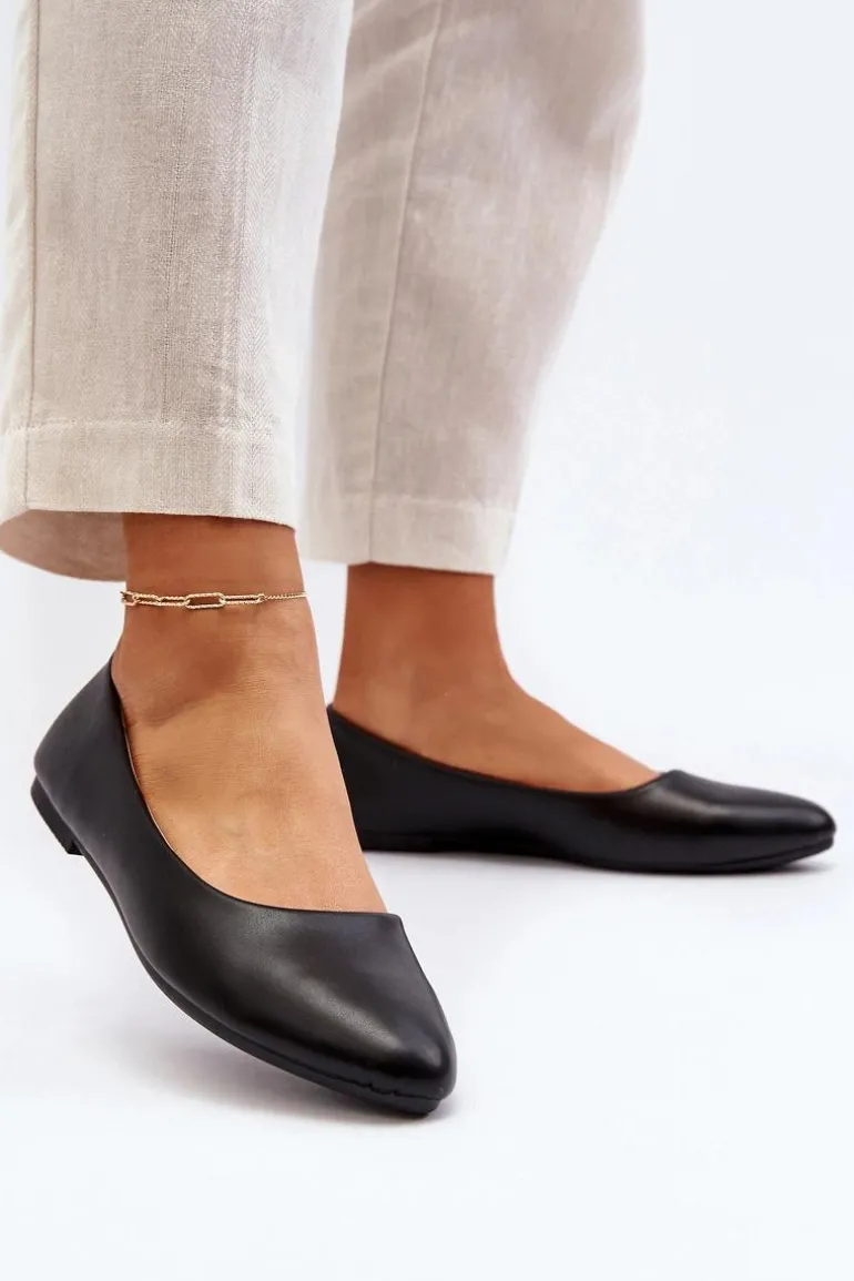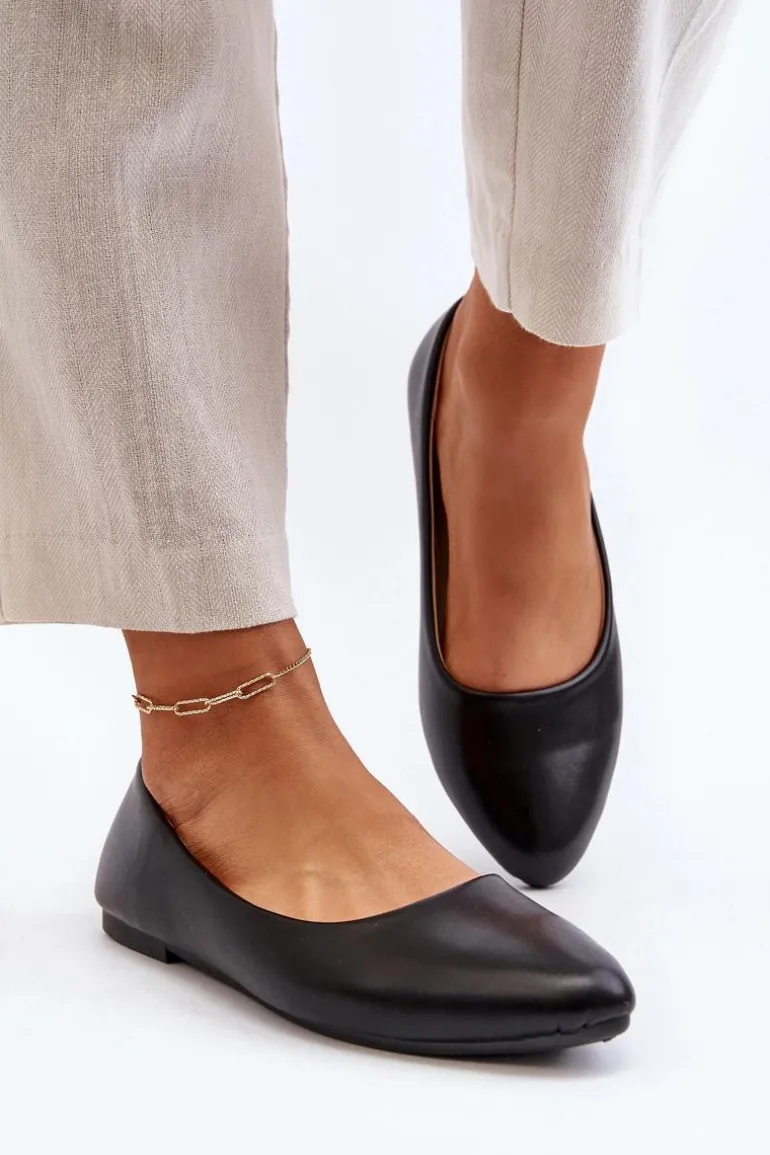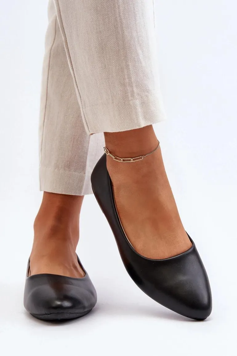 Eko Skórzane Baleriny Damskie Czarne Tindomiel