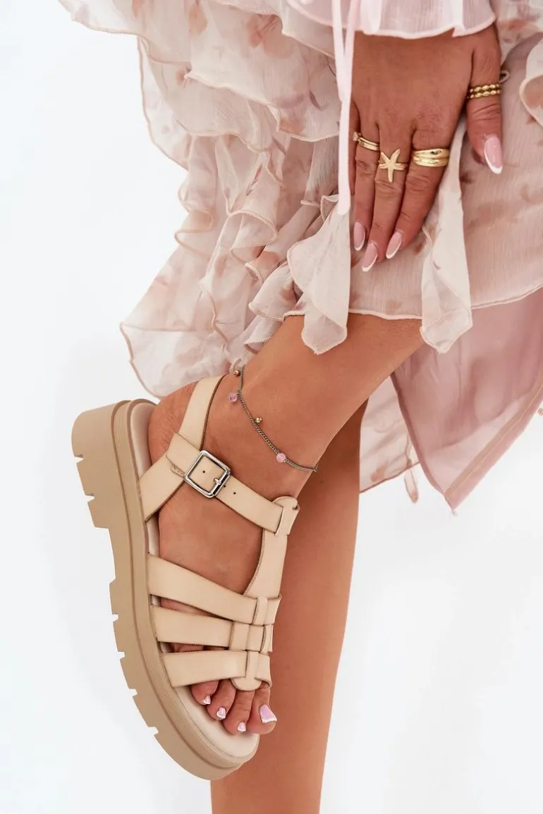 Sandały damskie wykonane z eko skóry. Osadzone na platformie, łączą komfort z modnym wyglądem. Zapinane na regulowany pasek ze sprzączką, co pozwala na idealne dopasowanie do stopy. Z przodu znajdują się paski, a miękka wkładka zapewnia wygodę przez cały dzień. Klasyczny fason sprawia, że te sandały będą doskonałym wyborem do wielu letnich stylizacji. Przy wyborze rozmiaru prosimy sugerować się tabelą rozmiarów.