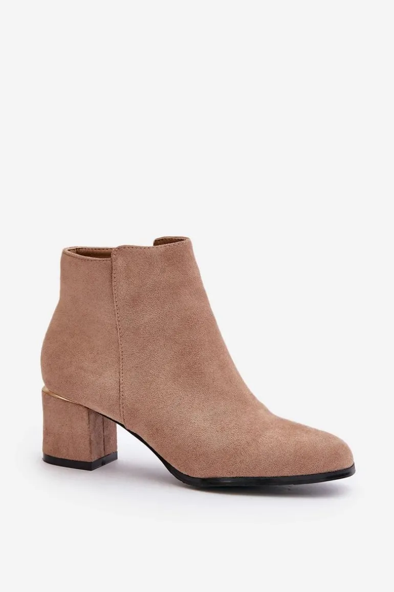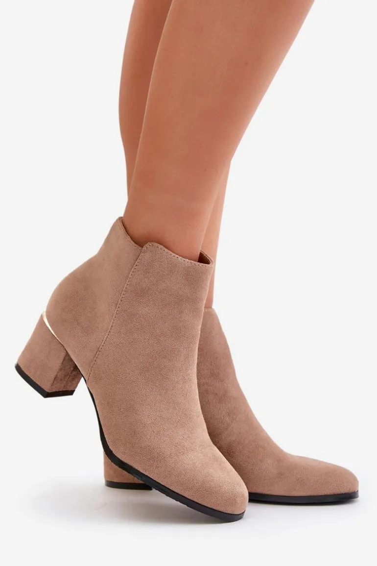 Klasyczne botki wykonane z eko zamszu, które wyróżniają się eleganckim i ponadczasowym stylem. Zapinane na zamek, co ułatwia ich zakładanie i zdejmowanie, oferują wygodę i praktyczność. Zaokrąglone noski dodają im subtelności, czyniąc je idealnym dodatkiem do wielu różnych stylizacji. Przy wyborze rozmiaru prosimy sugerować się tabelą rozmiarów.