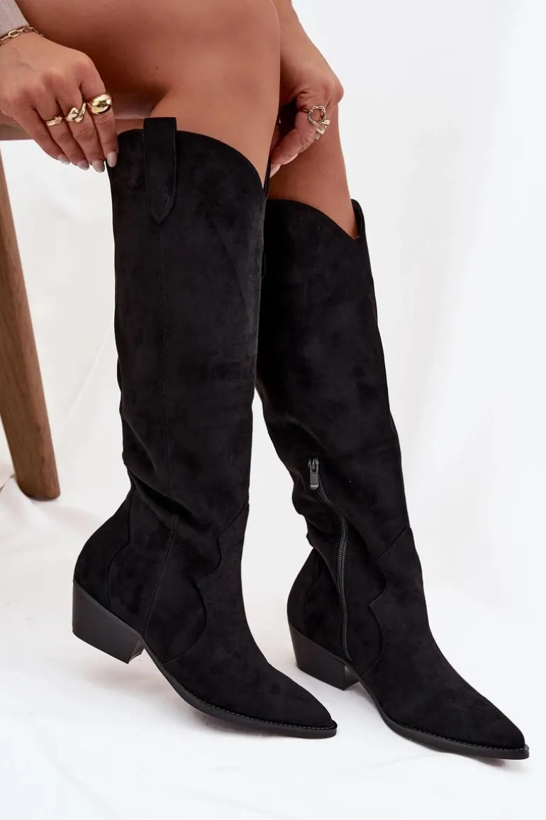 Stylowe kozaki kowbojki damskie z eko zamszu to absolutny hit sezonu! Model osadzony na ściętym obcasie i zakończony szpiczastym noskiem doskonale podkreśla nogę i dodaje stylizacji charakteru. Buty są wsuwane, a dodatkowy zamek na dole ułatwia zakładanie. Wykonane z miękkiego eko zamszu, idealnie wpisują się w modne, casualowe looki – świetnie wyglądają z sukienkami, spódnicami i jeansami typu skinny. Przy wyborze rozmiaru prosimy sugerować się poniższą tabelą rozmiarów.