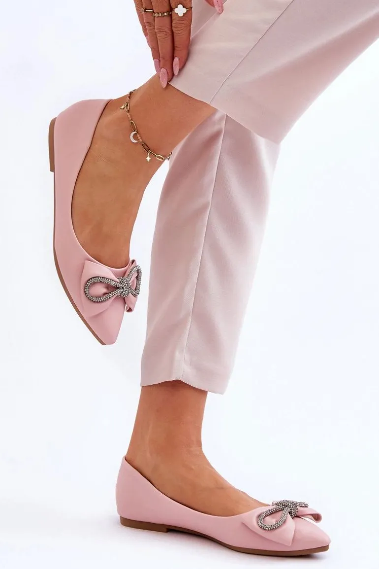 Eleganckie Baleriny Z Kokardą I Dżetami Różowe One Time