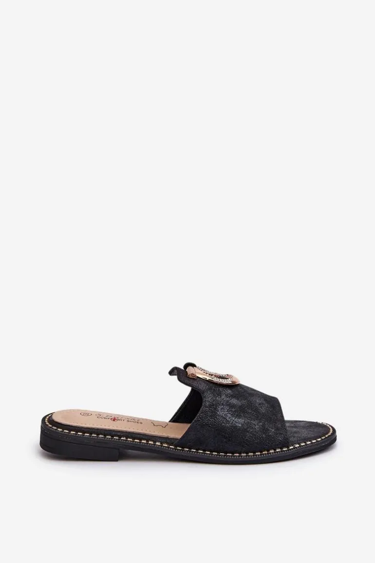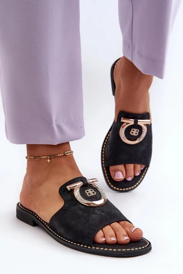 Eleganckie klapki damskie marki S.Barski są nie tylko stylowe, ale także wyjątkowo komfortowe. Osadzone na płaskim obcasie. Błyszczące ze złotą ozdobą. Miękka wkładka ze skóry naturalnej zapewni wygodę podczas użytkowania. Idealny wybór na wiele różnych okazji, doda wyrafinowanego uroku Twojej stylizacji. Przy wyborze rozmiaru prosimy sugerować się tabelą rozmiarów.