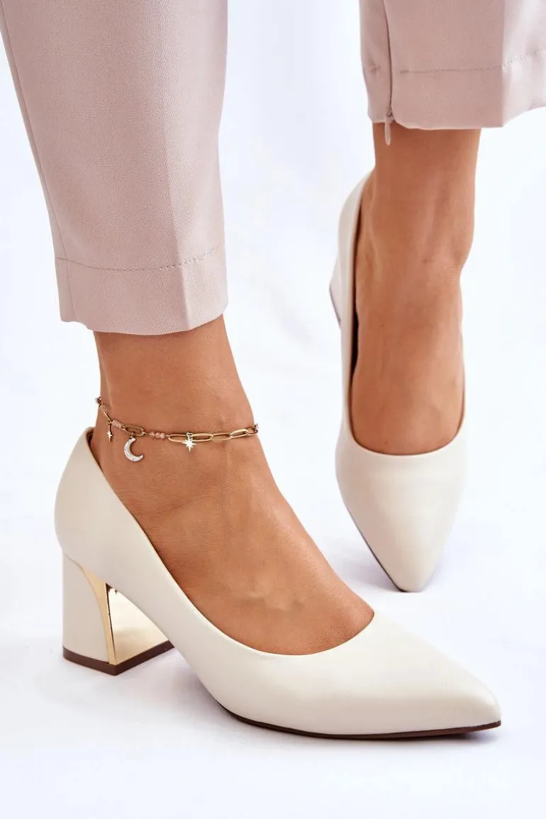 Te piękne czółenka zostały osadzone na obcasie w postaci stabilnego słupka ozdobionego lustrzanym elementem. Miękka wkładka zapewni komfortowe użytkowanie. Cholewka została wykonana ze skóry ekologicznej. Charakterystyczny nosek w szpic. Idealny model do pracy, na randkę czy biznesowe spotkania. Koniecznie musisz je mieć! Przy wyborze rozmiaru prosimy sugerować się tabelą rozmiarów.