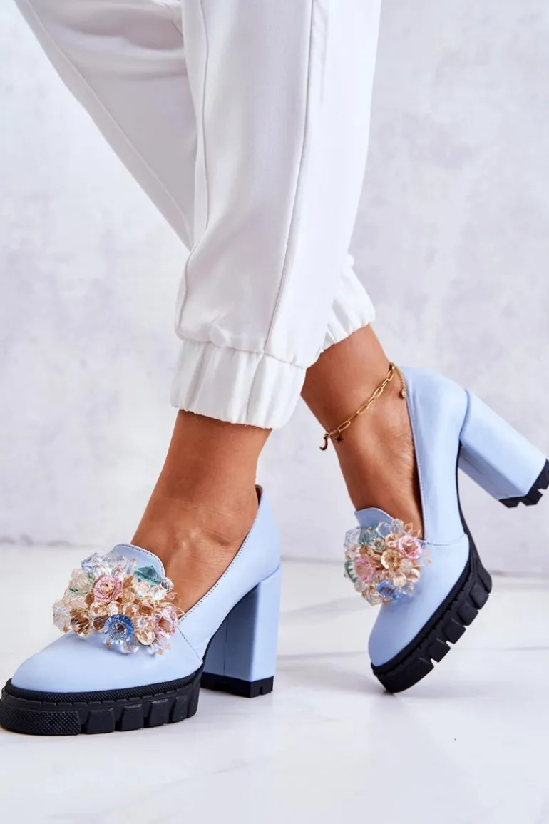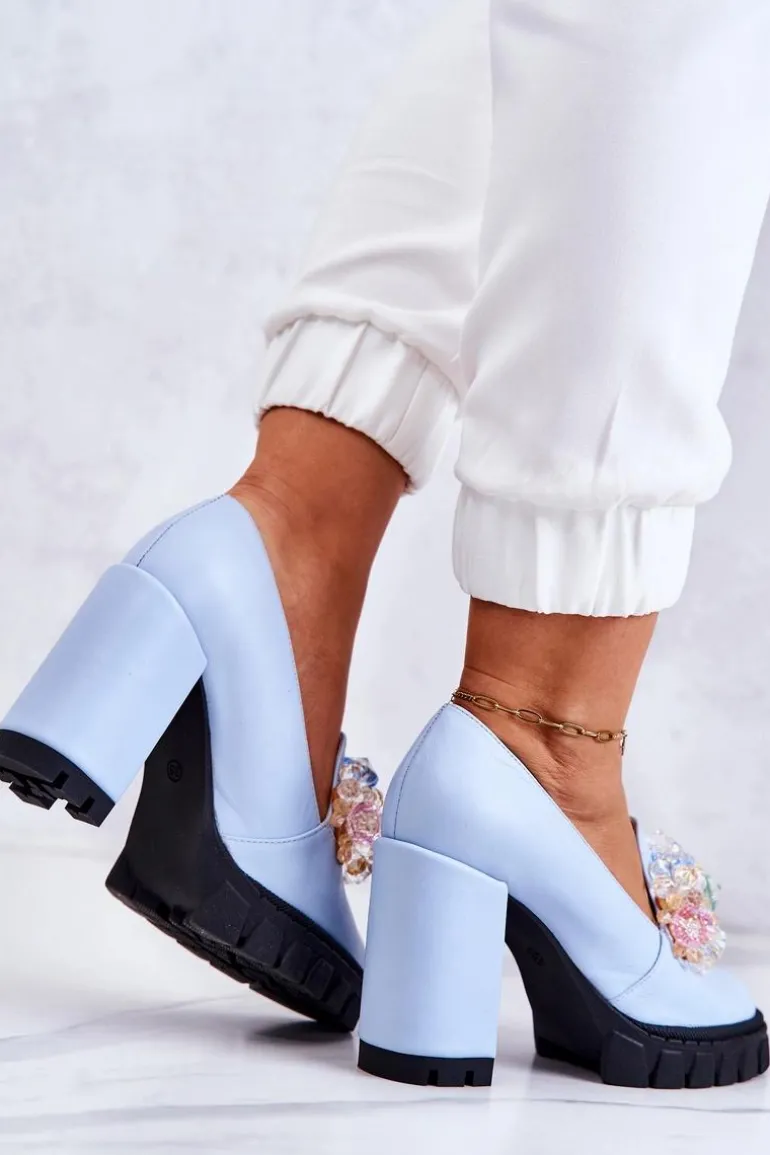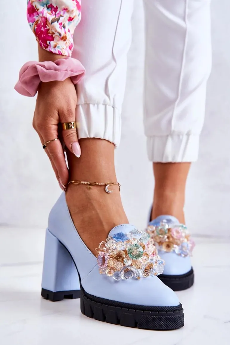 Cudne czółenka na masywnym obcasie w postaci słupka oraz platformie. Traperowa podeszwa sprawia, że te buty są wygodne i stabilne podczas użytkowania. Posiadają ozdobę w postaci imitacji barwnych kryształków z przodu obuwia. Miękka wkładka została wykonana z naturalnej skóry. Komfort to podstawa! Modny fason zachwyci niejedną miłośniczkę wysokich obcasów! Koniecznie powinnaś mieć ten model w swojej kolekcji obuwia! Przy wyborze rozmiaru prosimy sugerować się tabelą rozmiarów.