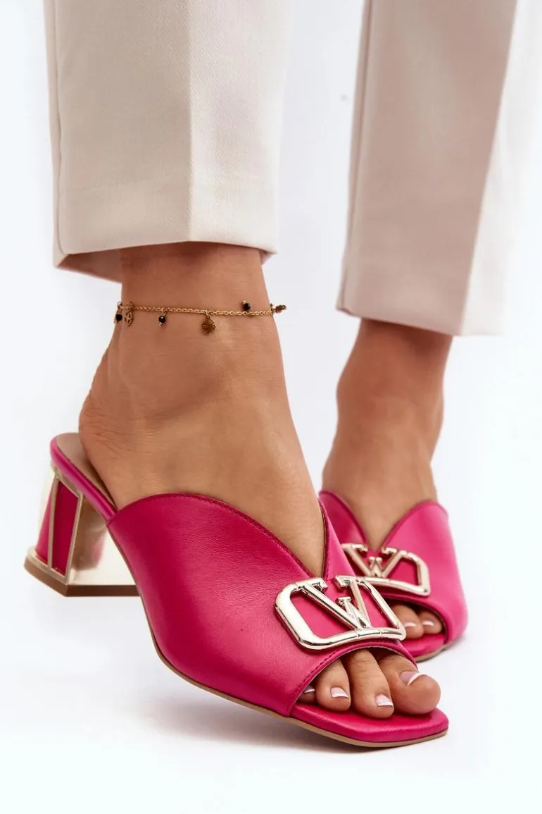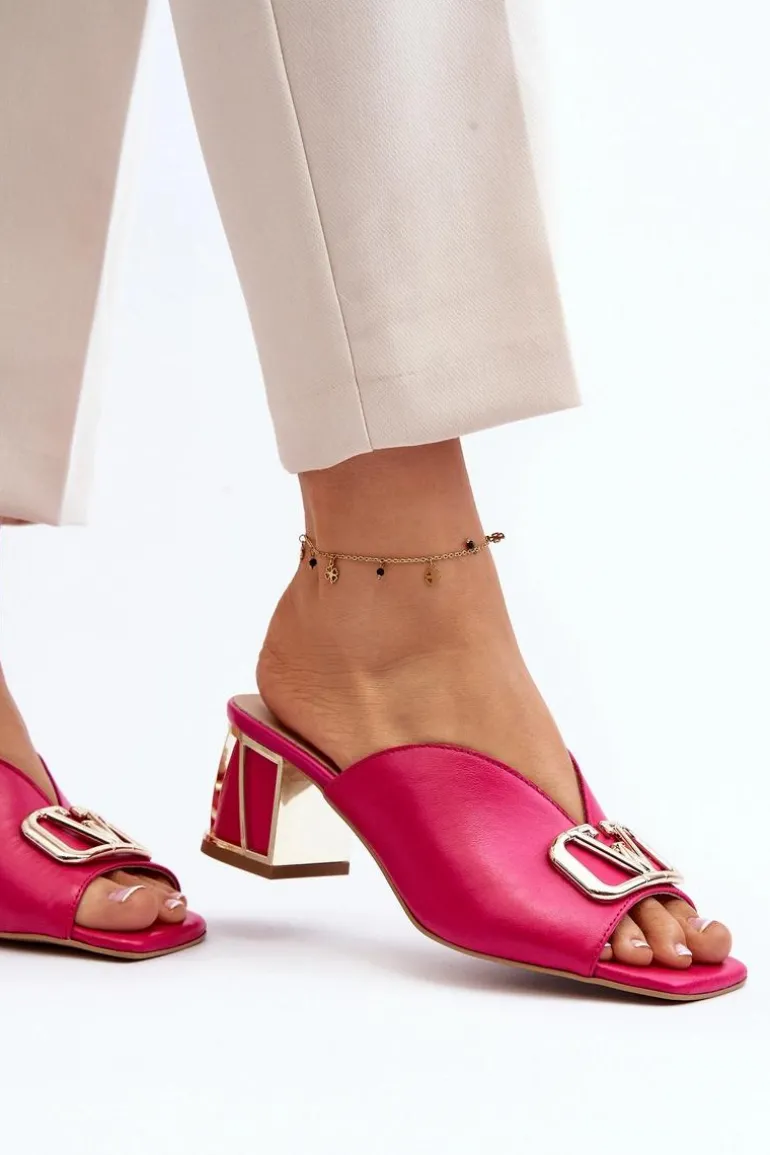 Eleganckie klapki damskie idealnie sprawdzą się w sezonie letnim. Wykonane z naturalnej skóry. Osadzone na obcasie w postaci klocka. Z przodu złota ozdoba. Fason ten dopasujesz do eleganckich spódnic, spodni i sukienek. Koniecznie powinnaś je mieć! Przy wyborze rozmiaru prosimy kierować się tabelą rozmiarów.