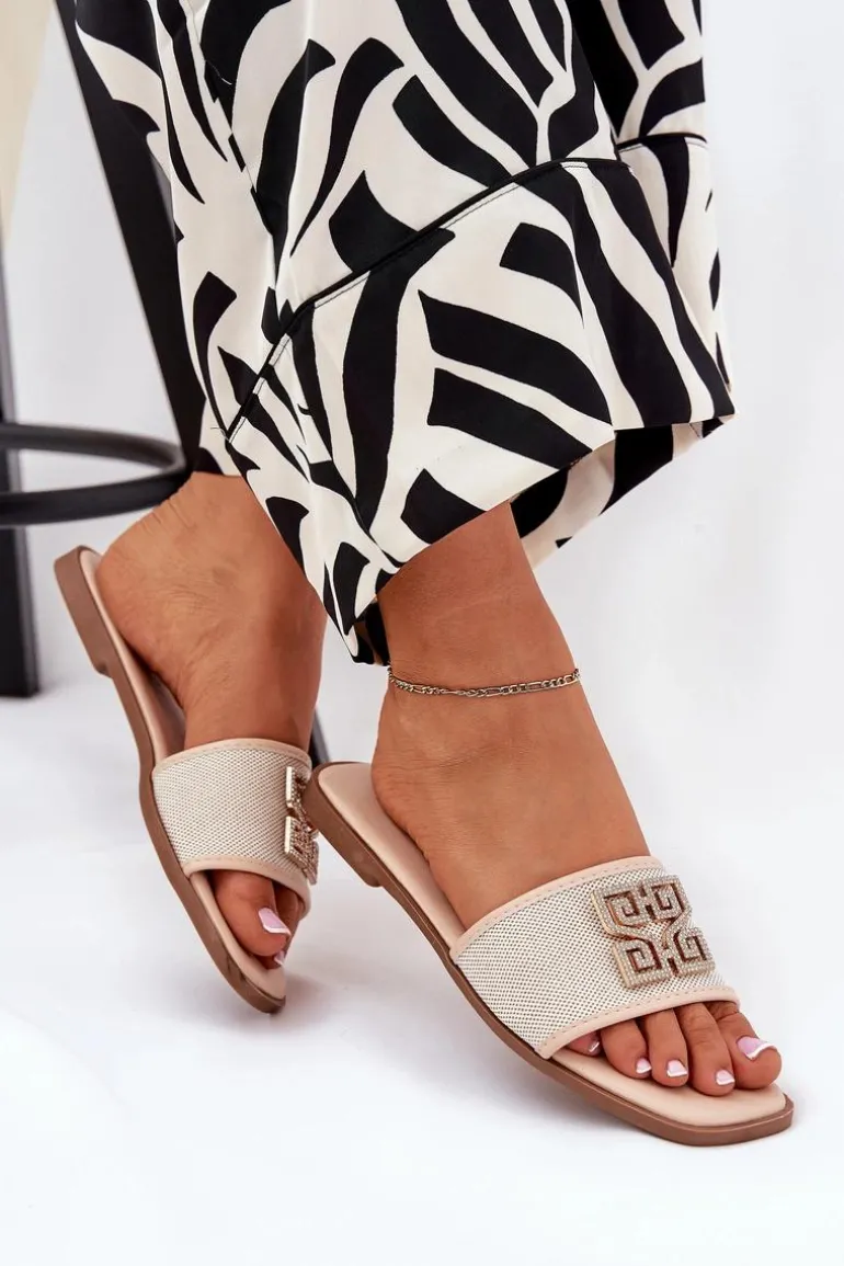 Damskie klapki na płaskim obcasie gwarantują komfort noszenia przez cały dzień. Ozdoba z lśniącymi cyrkoniami dodaje im delikatnego blasku. Ten model z pewnością podkreśli unikalny charakter Twojej letniej garderoby. Przy wyborze rozmiaru prosimy sugerować się tabelą rozmiarów.