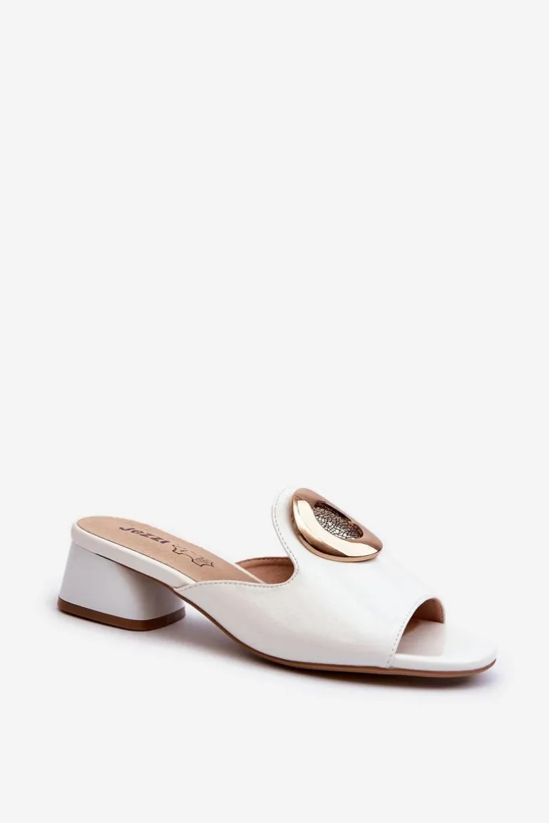 Klapki damskie marki Jezzi. Wykonane z eko skóry. Złota ozdoba dodaje elegancji i subtelności. Doskonale sprawdzą się zarówno na letnie spacery, jak i na wieczorne wyjścia. Dzięki niskiemu obcasowi można w nich czuć się wygodnie przez cały dzień, a jednocześnie prezentują się bardzo kobieco i modnie. Idealne na różne okazje, te klapki dodają blasku Twojej stylizacji. Przy wyborze rozmiaru prosimy sugerować się tabelą rozmiarów.