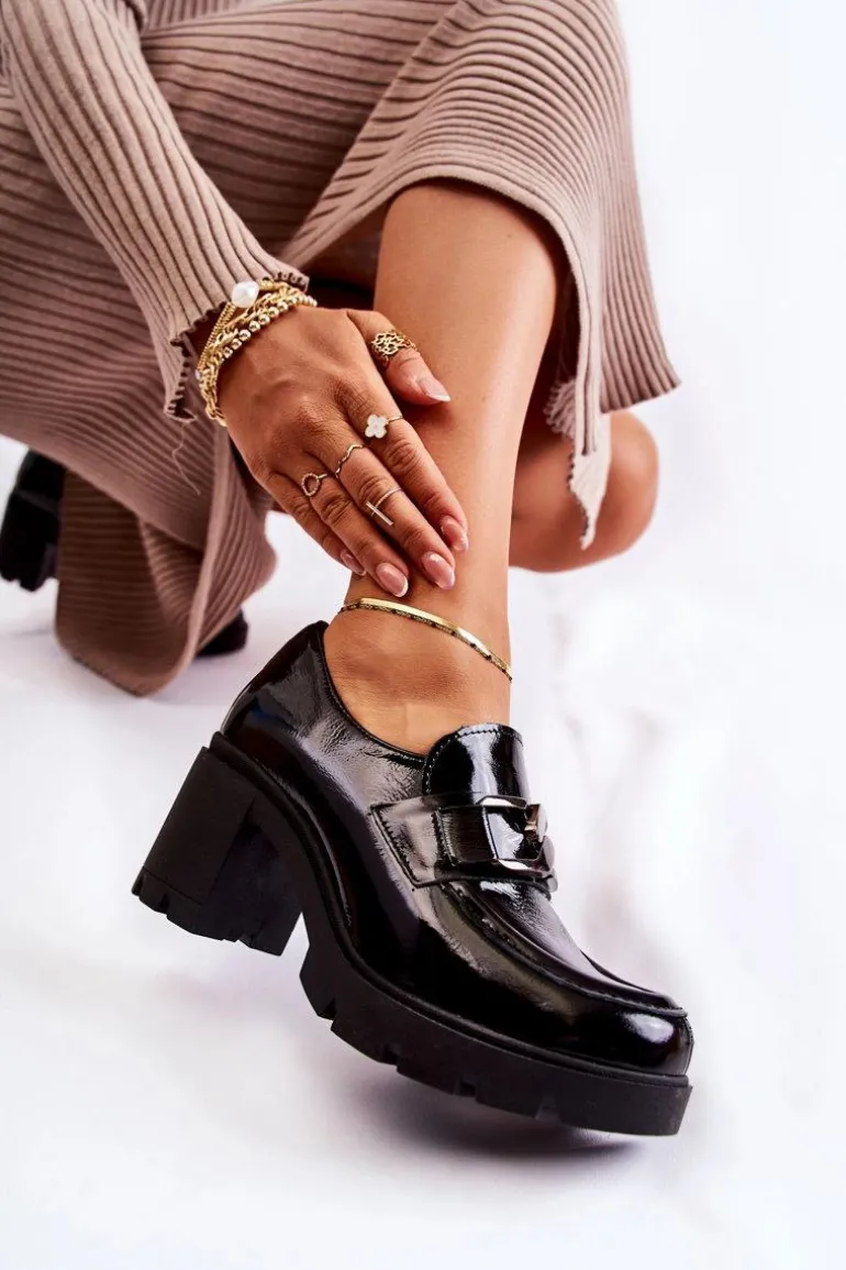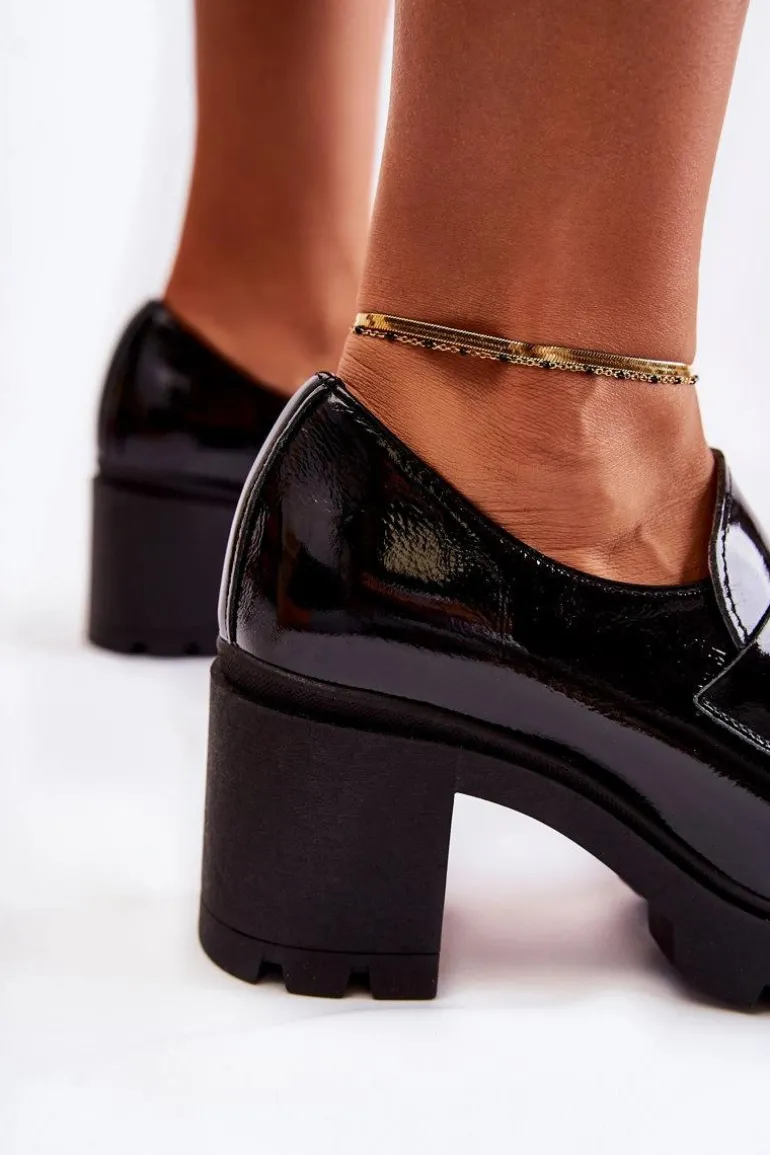 Cudowne półbuty na obcasie z cholewką wykonaną ze skóry naturalnej. Wnętrze zostało pokryte skórą naturalną oraz materiałem tekstylnym, dzięki temu są bardzo komfortowe w użytkowaniu. Wkładka ze skóry naturalnej, a podeszwa wykonana z gumowego tworzywa. Stylowy obcas w postaci szerokiego słupka zapewni stabilizację na każdym kroku. Lustrzana ozdoba na przodzie. Zapiętek jest usztywniany. Dodatkowo pod językiem znajduje się gumka ściągająca, która sprawi, że but będzie idealnie dopasowany do stopy. Przy wyborze rozmiaru prosimy sugerować się tabelą rozmiarów.