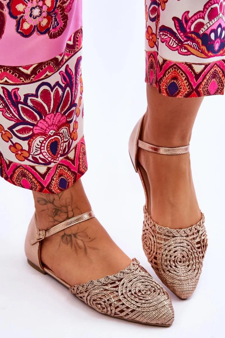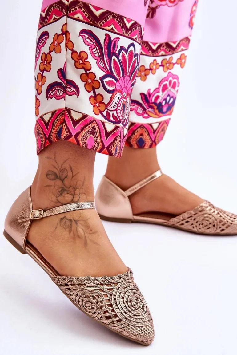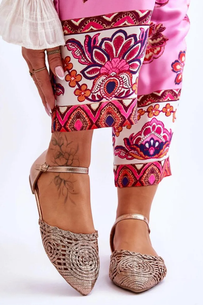 Eleganckie Sandały Damskie Płaskie Różowe Złoto Sheia