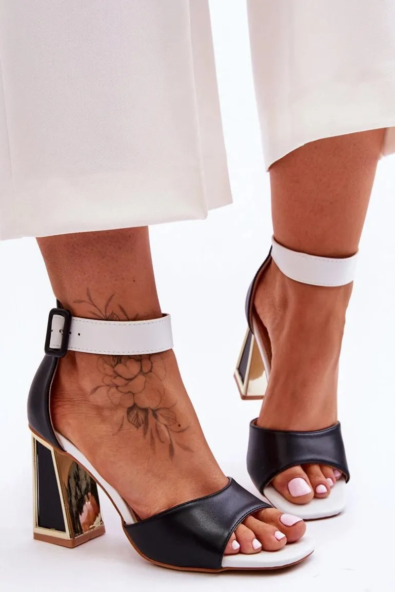 Damskie sandałki zostały wykonane z eko skóry. Świetnie sprawdzą się na wiele okazji podczas letniego sezonu! Miękka wkładka zapewni wygodne użytkowanie. Sandałki posiadają usztywniany zapiętek. Zapinane wokół kostki na regulowany pasek ze sprzączką. Model ten został osadzony na obcasie w postaci zdobionego słupka. Przy wyborze rozmiaru prosimy sugerować się tabelą rozmiarów.