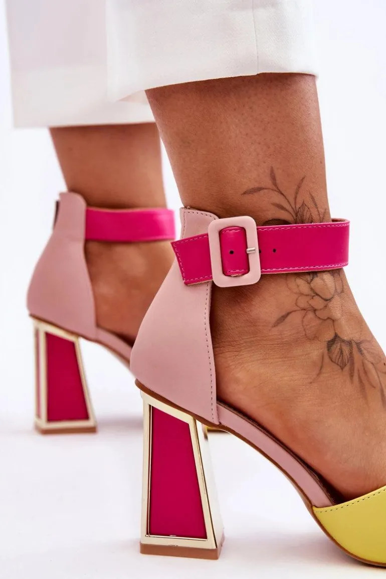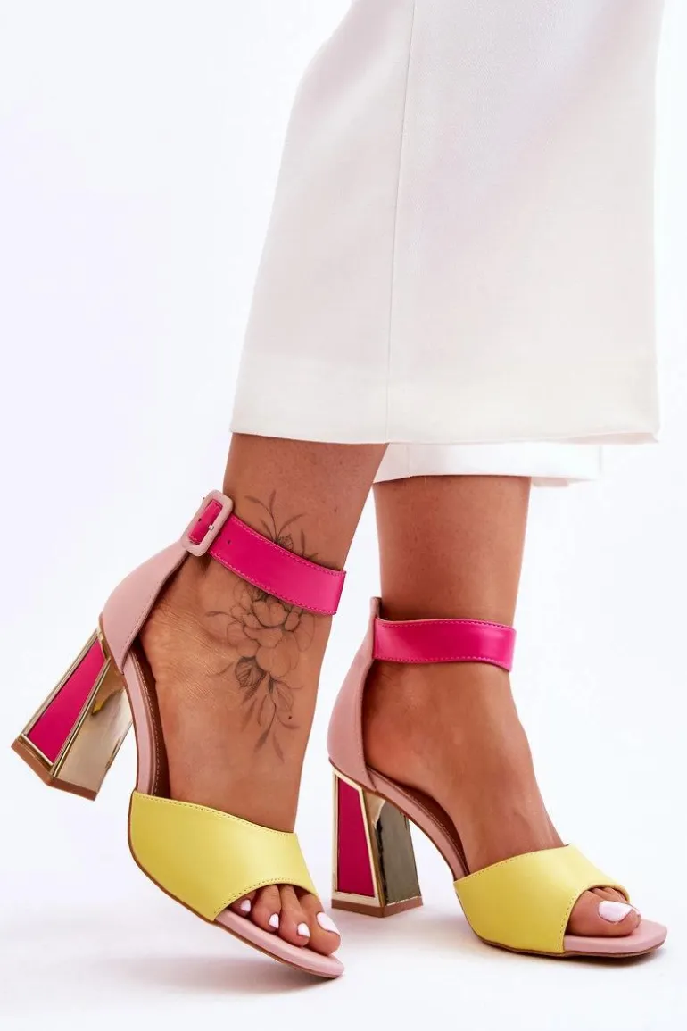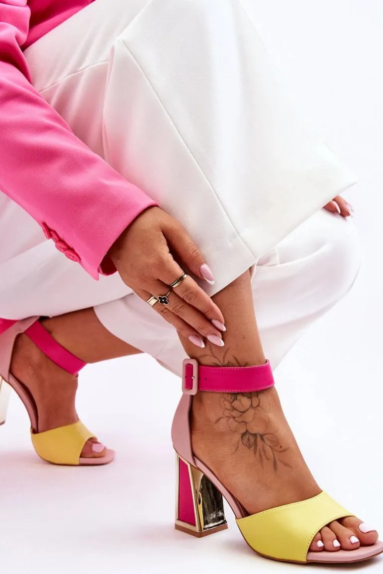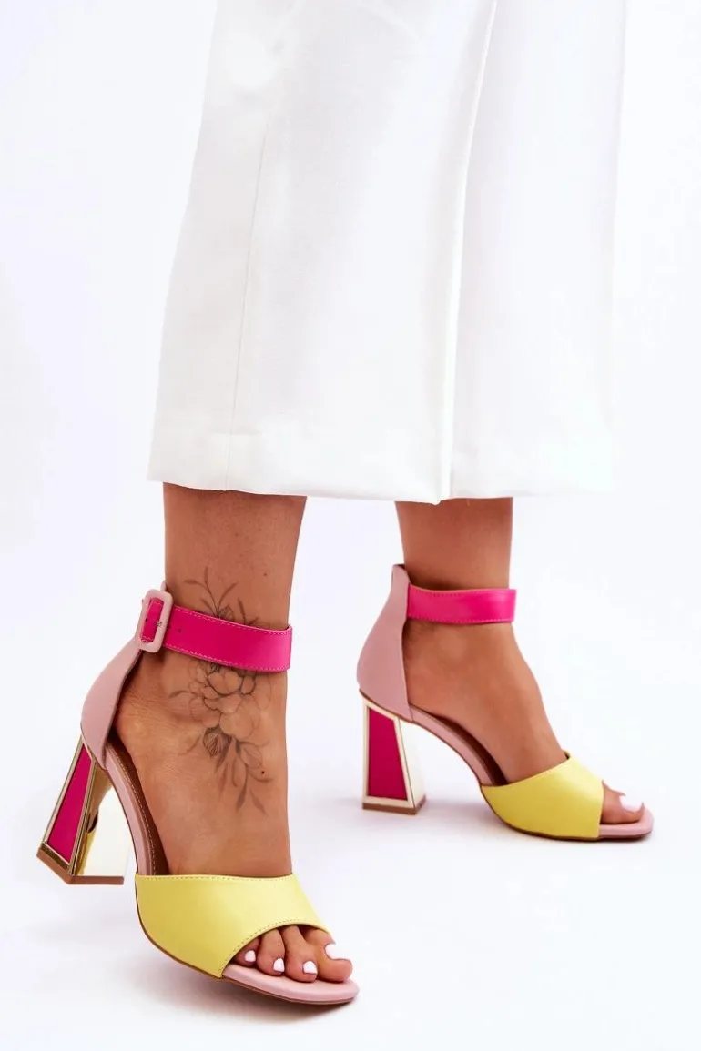 Damskie sandałki zostały wykonane z eko skóry. Świetnie sprawdzą się na wiele okazji podczas letniego sezonu! Miękka wkładka zapewni wygodne użytkowanie. Sandałki posiadają usztywniany zapiętek. Zapinane wokół kostki na regulowany pasek ze sprzączką. Model ten został osadzony na obcasie w postaci zdobionego słupka. Przy wyborze rozmiaru prosimy sugerować się tabelą rozmiarów.