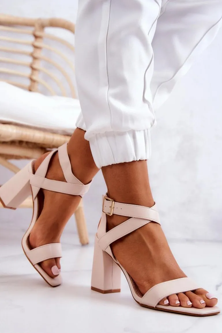 Klasyczne i eleganckie sandały na obcasie w postaci słupka. Buty wykonane są w całości ze skóry ekologicznej. Posiadają regulowany pasek zapinany na sprzączkę. Pięknie prezentują się na nodze. Miękka wkładka sprawi, że będziesz czuć się komfortowo. Koniecznie powinnaś mieć w swojej garderobie sandałki na obcasie, dlatego nie zwlekaj i kup już teraz! Przy wyborze rozmiaru prosimy sugerować się tabelą rozmiarów