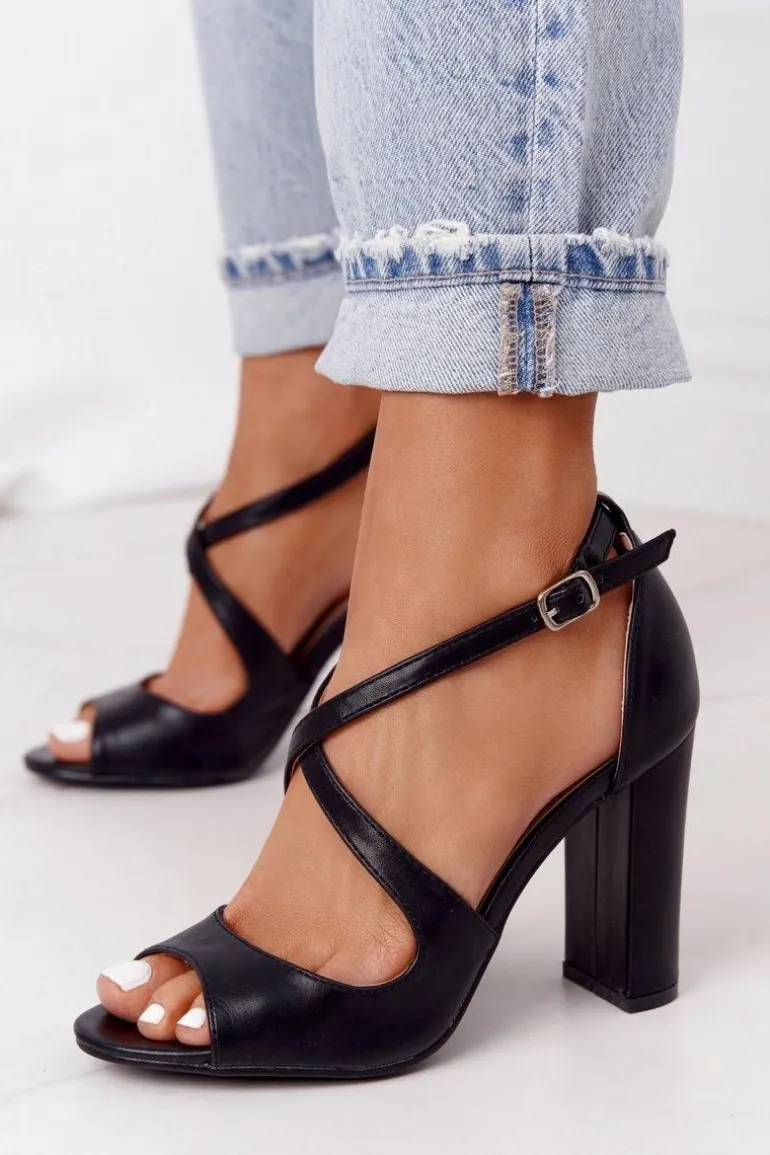 Eleganckie Sandały Na Słupku Czarne Jemma