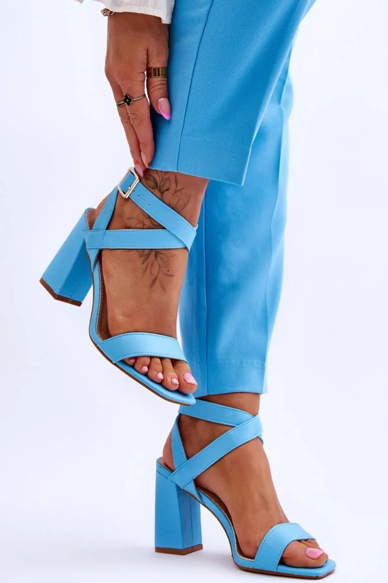 Eleganckie Sandały Na Słupku Jasnoniebieskie Michele
