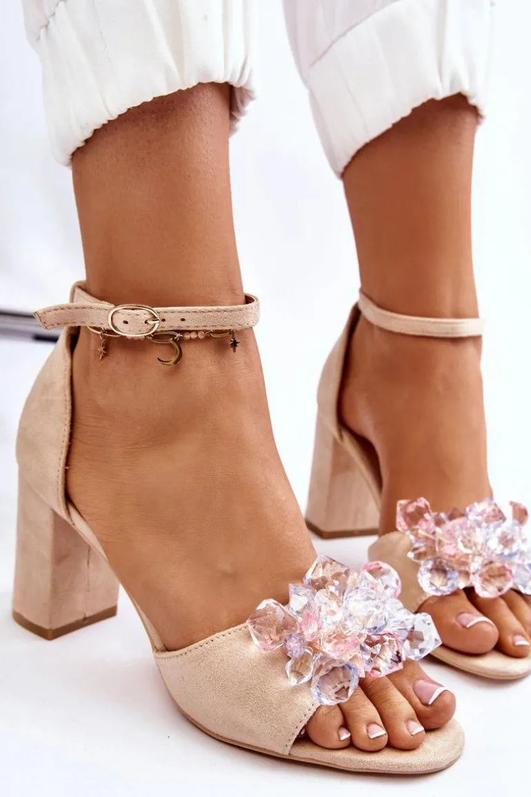 Niezwykłe sandały na obcasie w postaci słupka. Paseczek na przodzie został ozdobiony modnymi kryształkami, co dodaje tym butom elegancji. Miękka wkładka z eko skóry zadba o Twój komfort podczas użytkowania. Model ten świetnie sprawdzi się na różnego rodzaju ważnych uroczystościach czy spotkaniach biznesowych. Koniecznie powinnaś je mieć w swojej garderobie! Przy wyborze rozmiaru prosimy sugerować się tabelą rozmiarów.