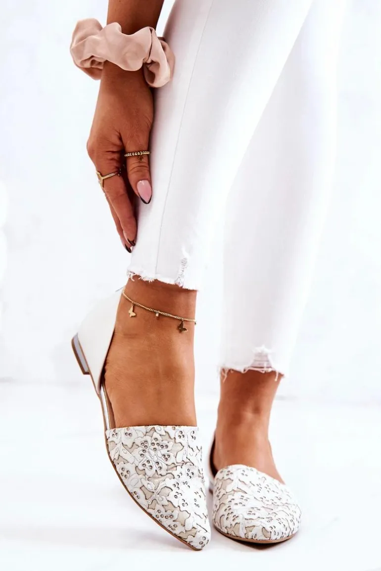 Eleganckie Skórzane Baleriny Laura Messi 1110 Beżowe