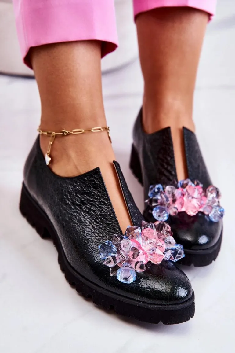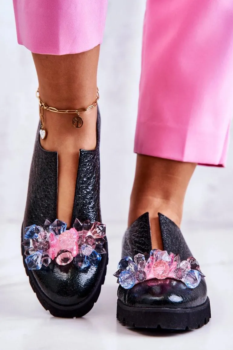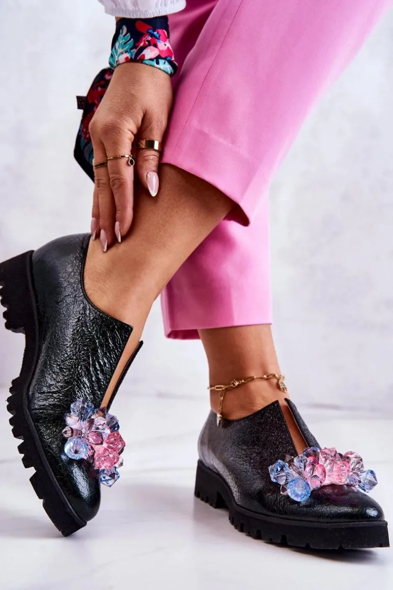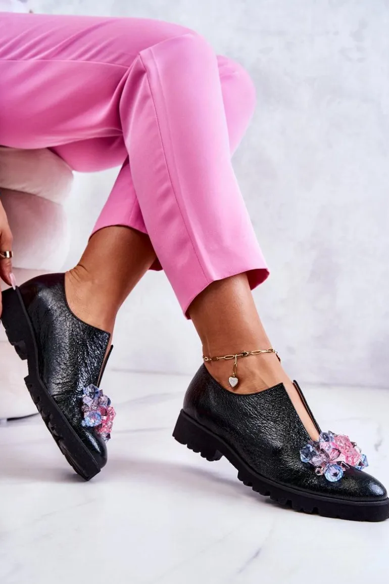 Eleganckie Skórzane Półbuty Z Ozdobą Ciemnozielone Cindy