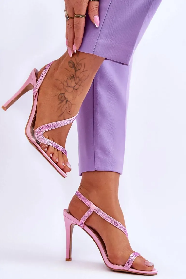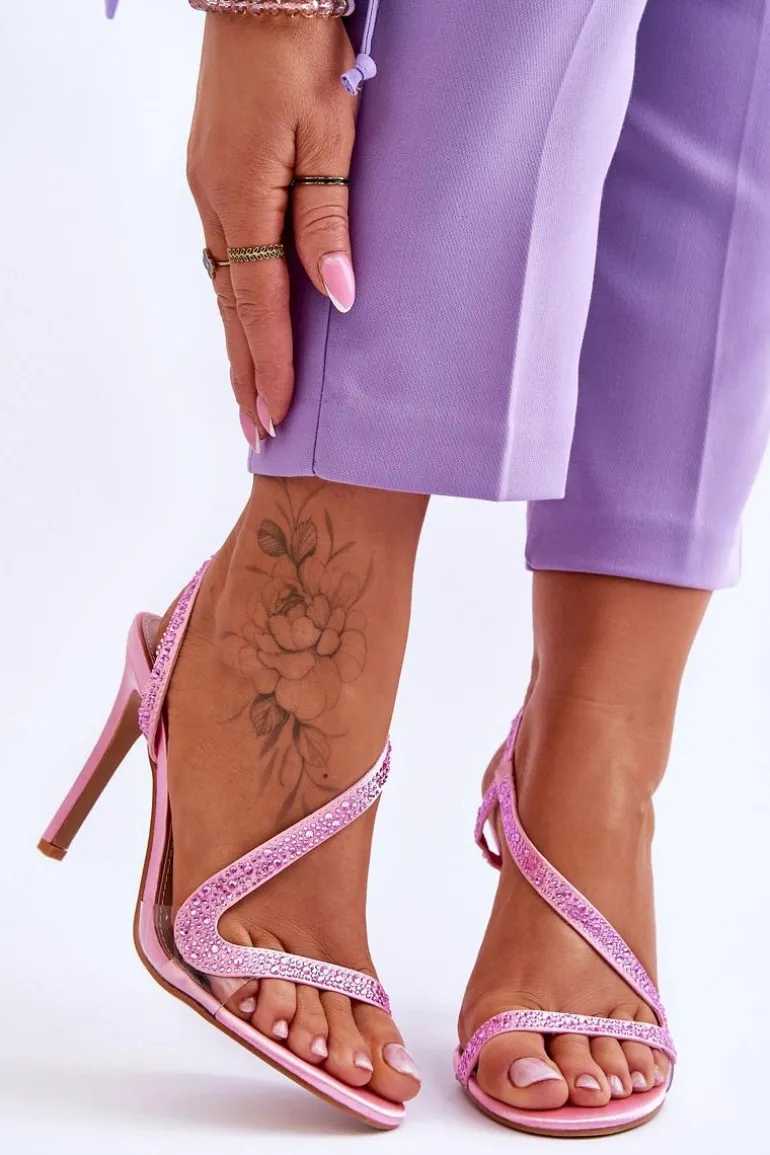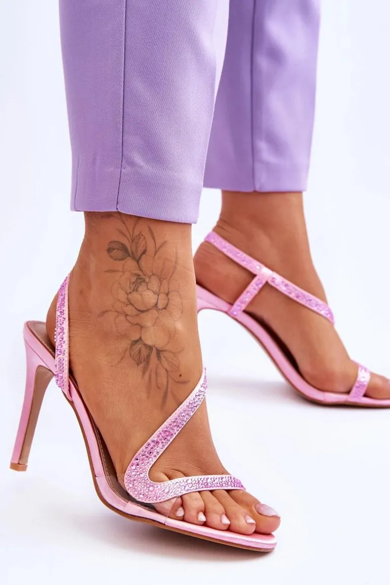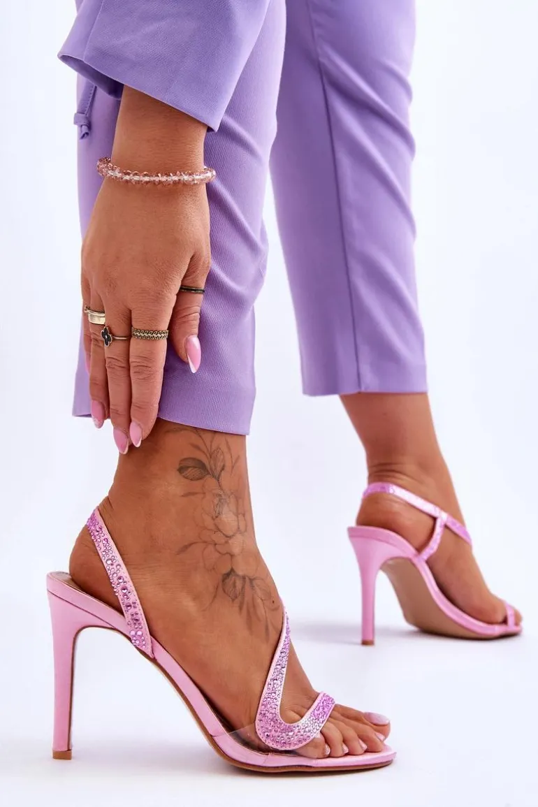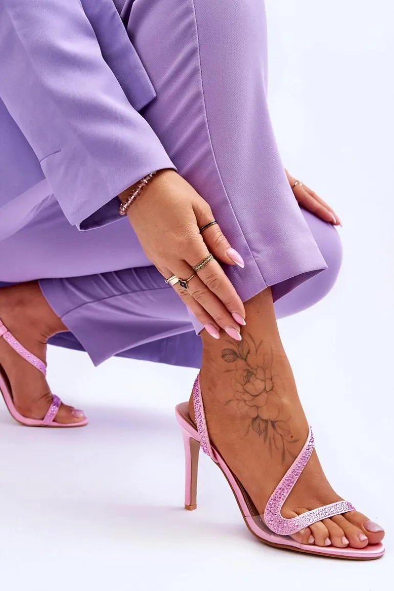 Eleganckie Wsuwane Sandałki Na Obcasie Różowe Colima