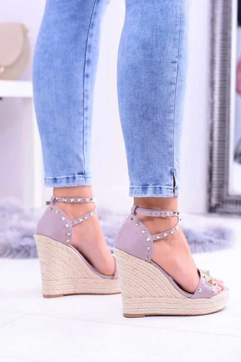 Fioletowe Sandały Na Koturnie Espadryl Ćwieki Dżety Narumi