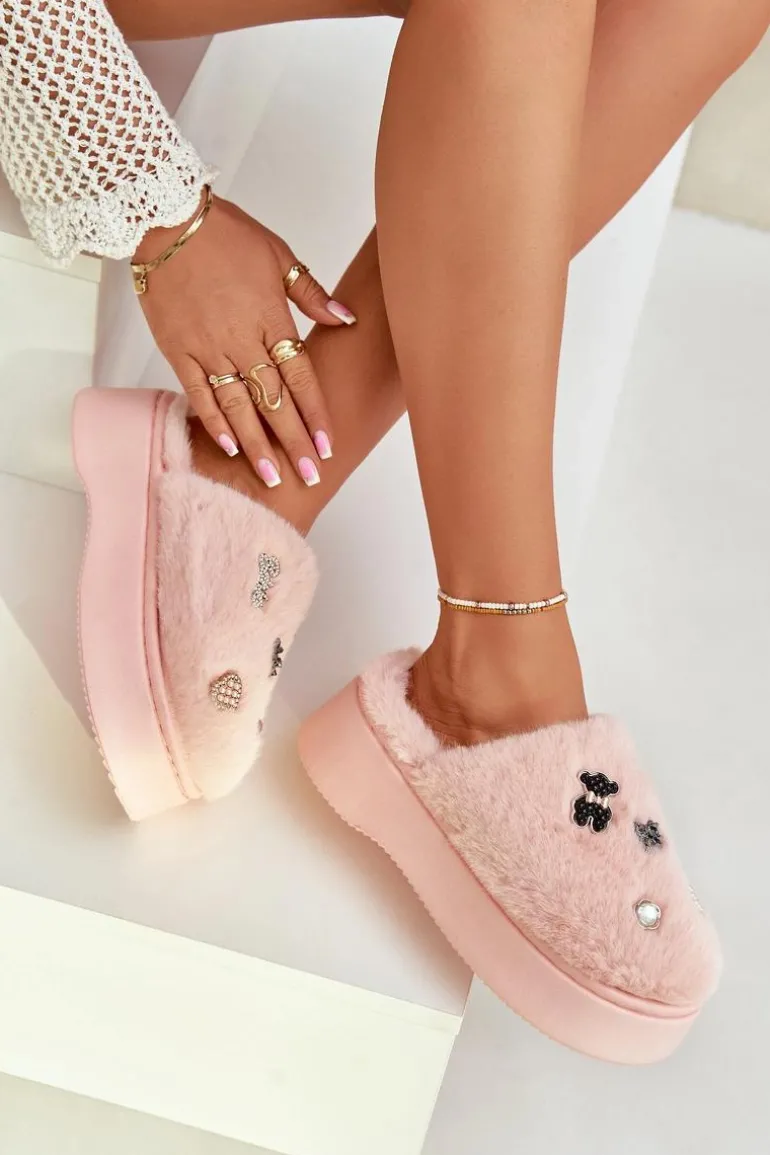 Futrzane kapcie damskie na grubej podeszwie to idealne połączenie stylu i komfortu. Wykonane z miękkiego, przytulnego futerka, zapewniają ciepło i wygodę na chłodne dni. Zakryte noski dodatkowo chronią stopy przed zimnem, a urocze przypinki dodają im wyjątkowego, modnego charakteru. Doskonałe zarówno do domowego relaksu, jak i na szybkie wyjścia na zewnątrz. Przy wyborze rozmiaru prosimy sugerować się tabelą rozmiarów.