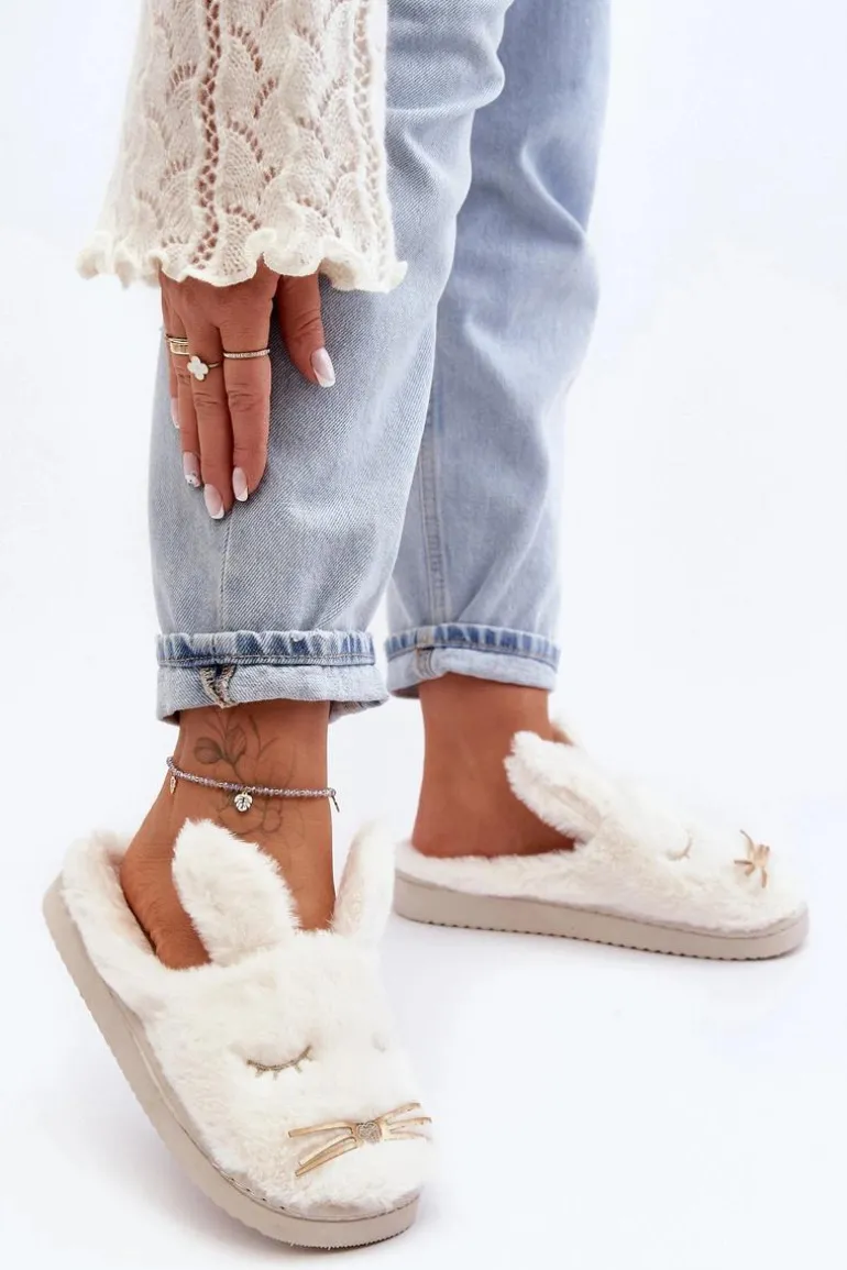 Urocze, wsuwane kapcie damskie. Wykonane z miłego w dotyku futerka. Podeszwa z gumowego tworzywa świetnie odizoluje od zimnego podłoża. Model wsuwany. Noski zakryte. Przy wyborze rozmiaru prosimy sugerować się tabelą rozmiarów.