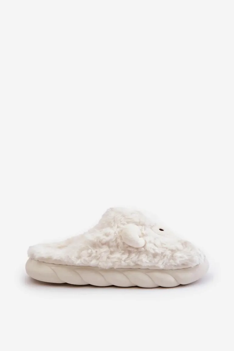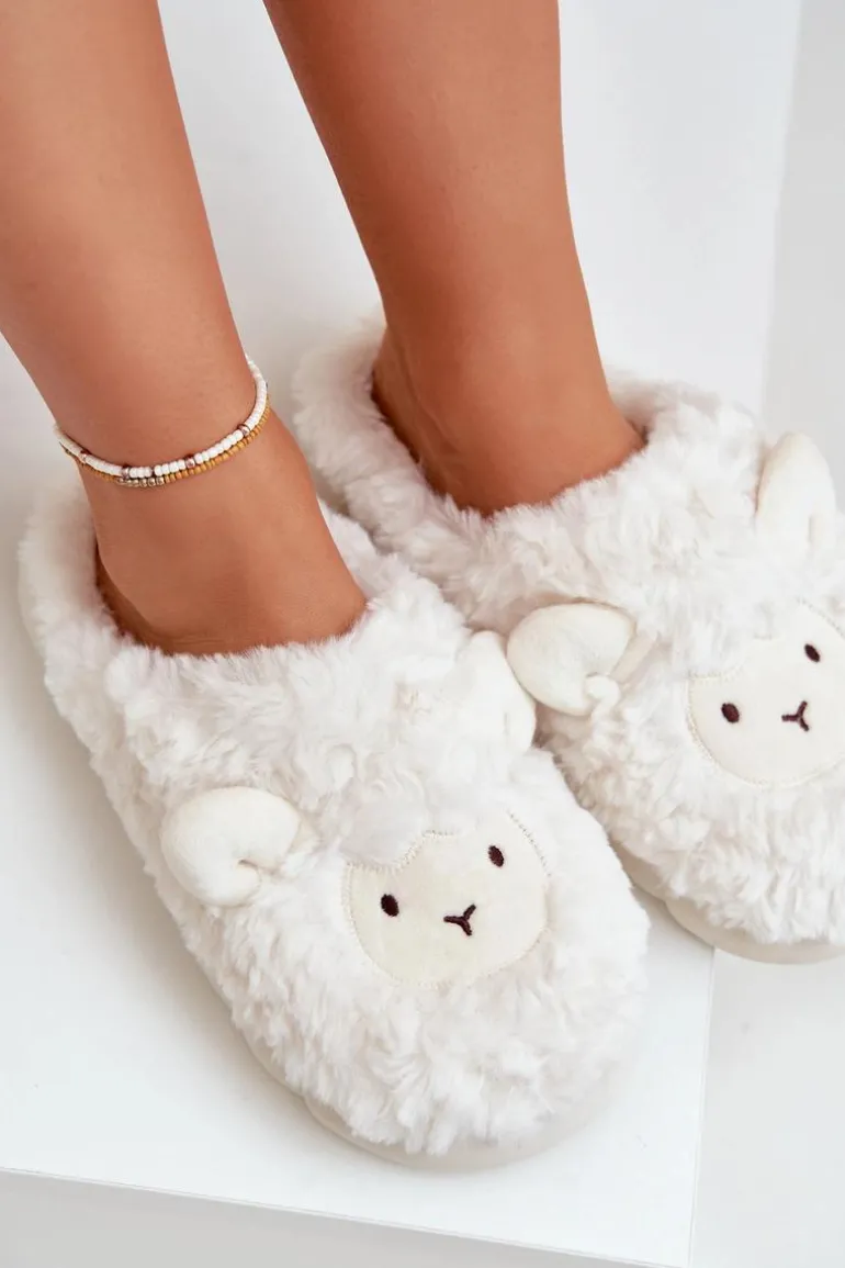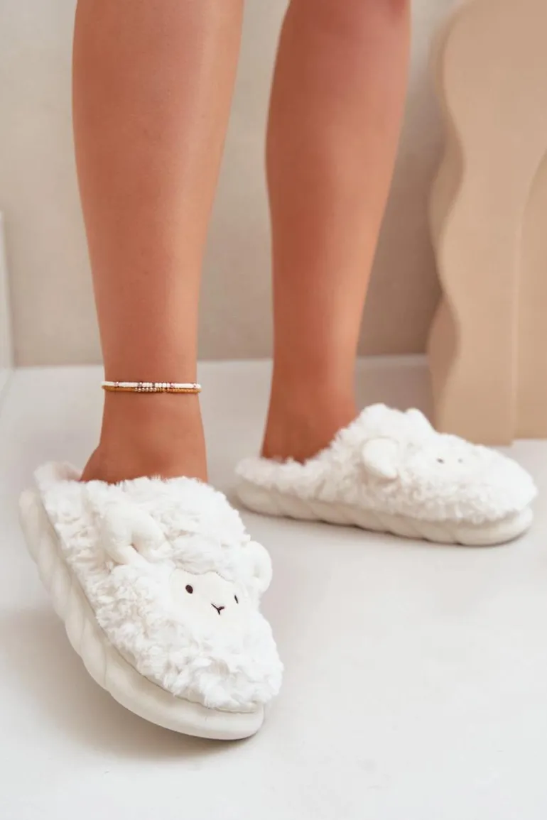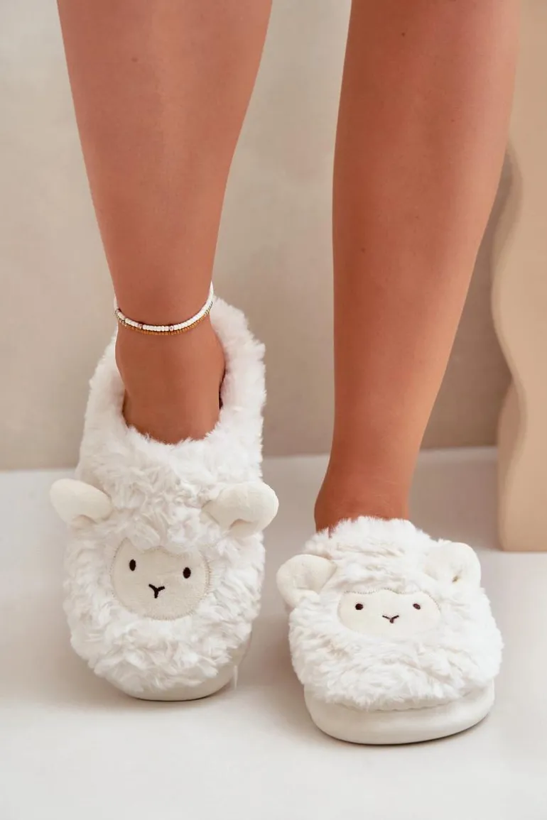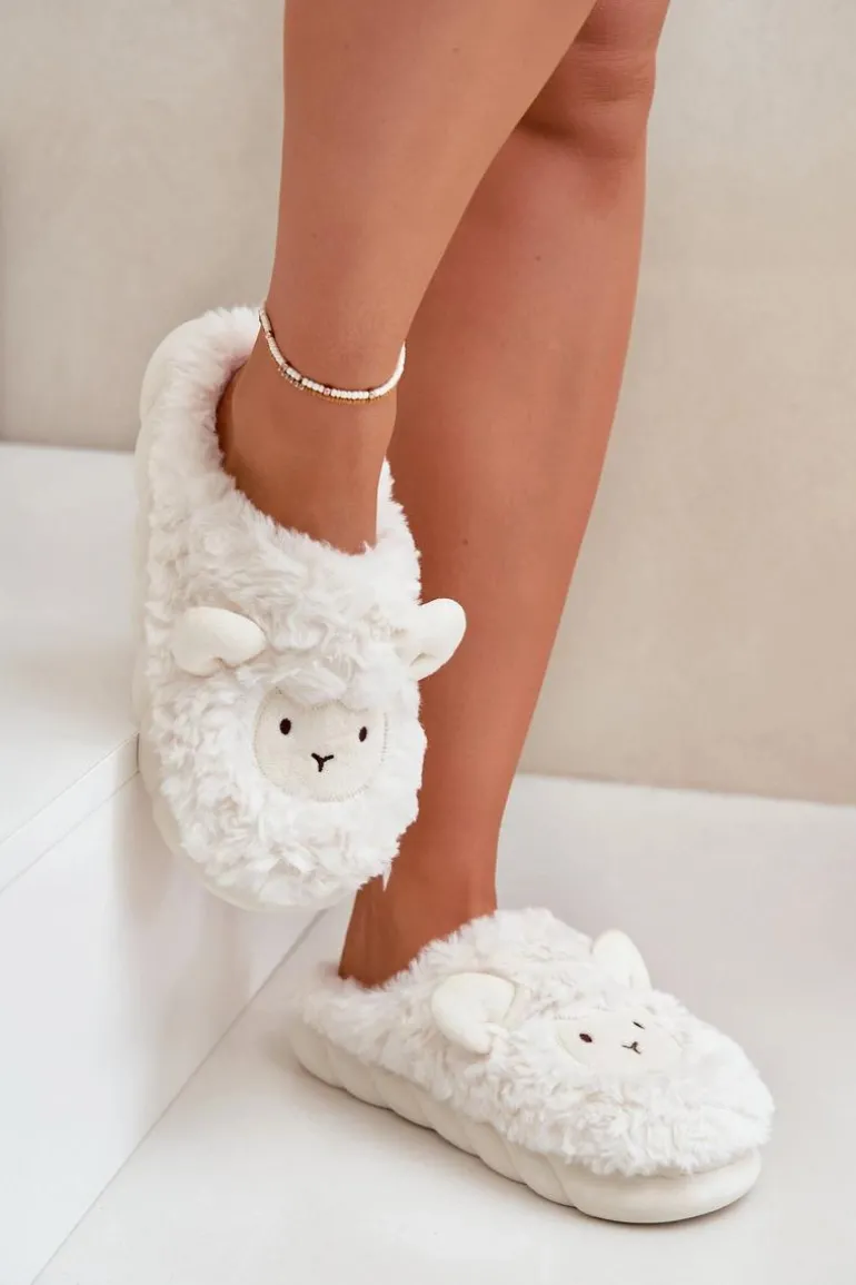 Futrzane Kapcie Damskie Z Motywem Owcy Białe Phaeia