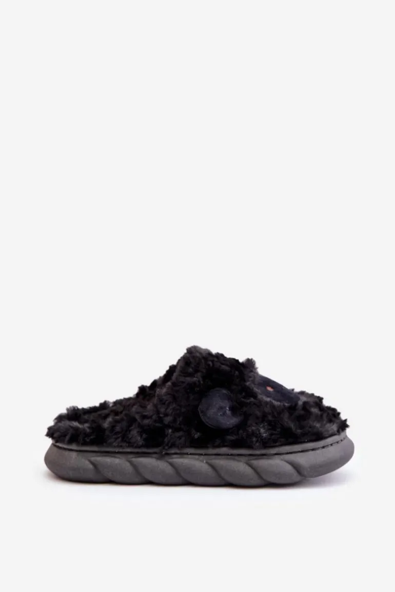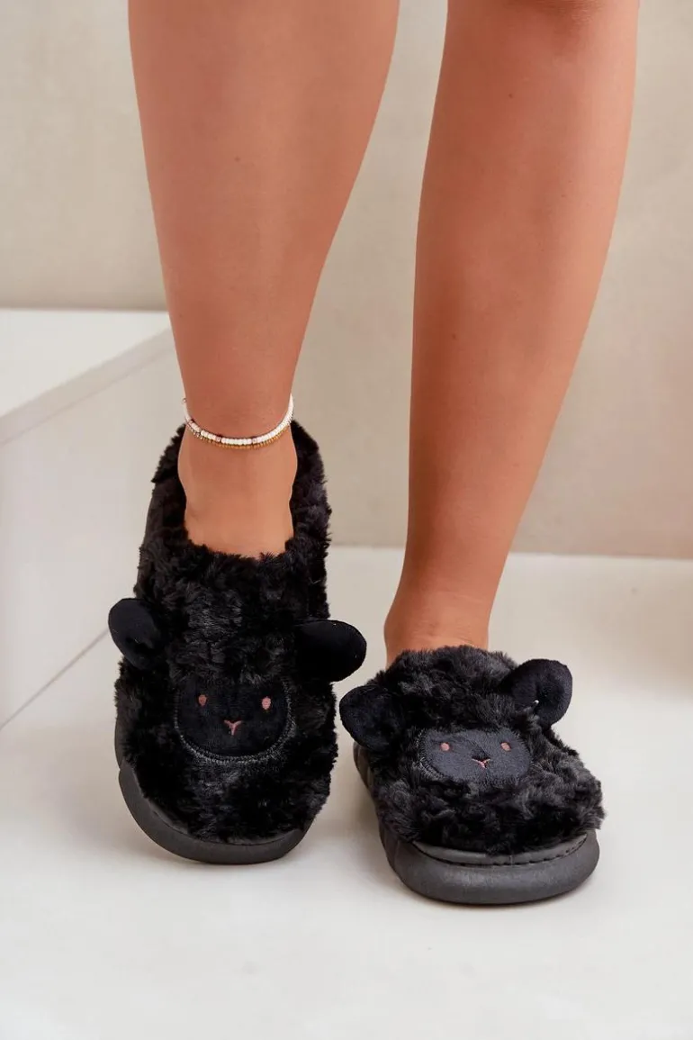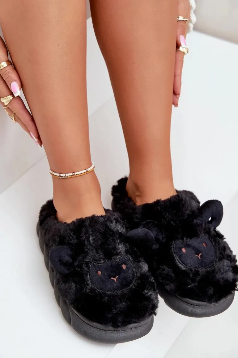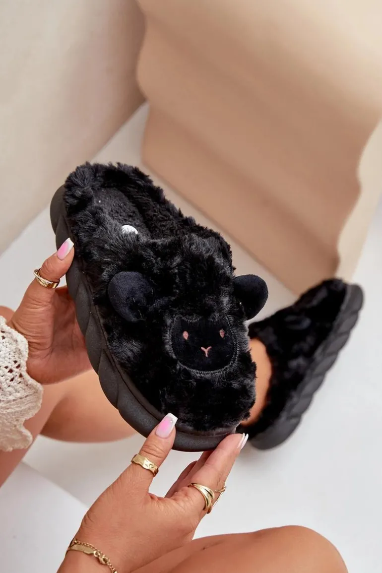Futrzane Kapcie Damskie Z Motywem Owcy Czarne Phaeia