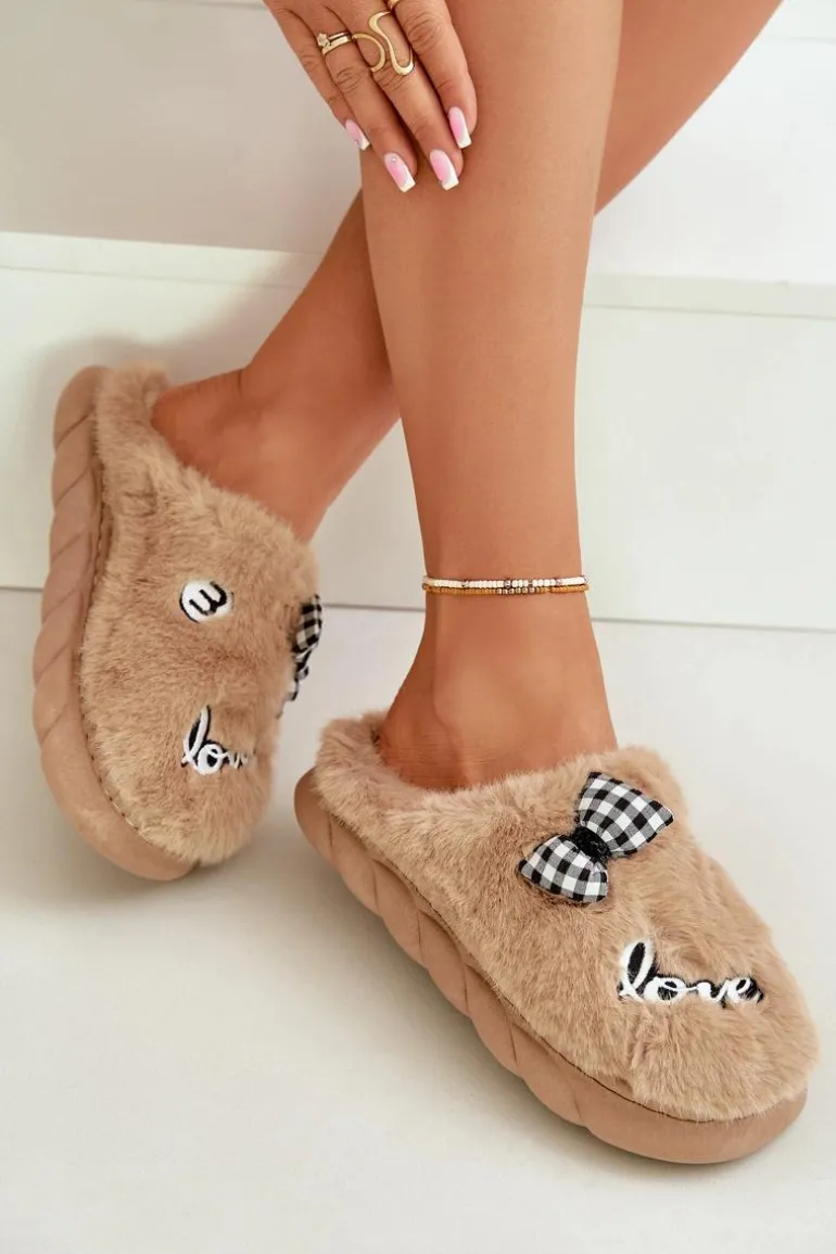 Futrzane kapcie damskie to doskonałe połączenie komfortu i uroku. Wykonane z miękkiego, przytulnego futerka, zapewniają ciepło i wygodę podczas noszenia. Dodatkową ozdobą są urocze naszywki oraz delikatna kokardka, które nadają wyjątkowego, stylowego charakteru. Idealne do noszenia w domu, świetnie sprawdzą się w chłodniejsze dni, zapewniając jednocześnie modny wygląd. Przy wyborze rozmiaru prosimy sugerować się tabelą rozmiarów.