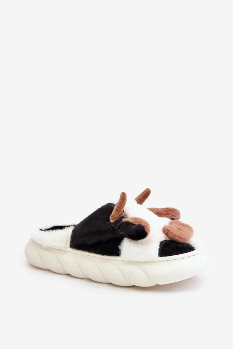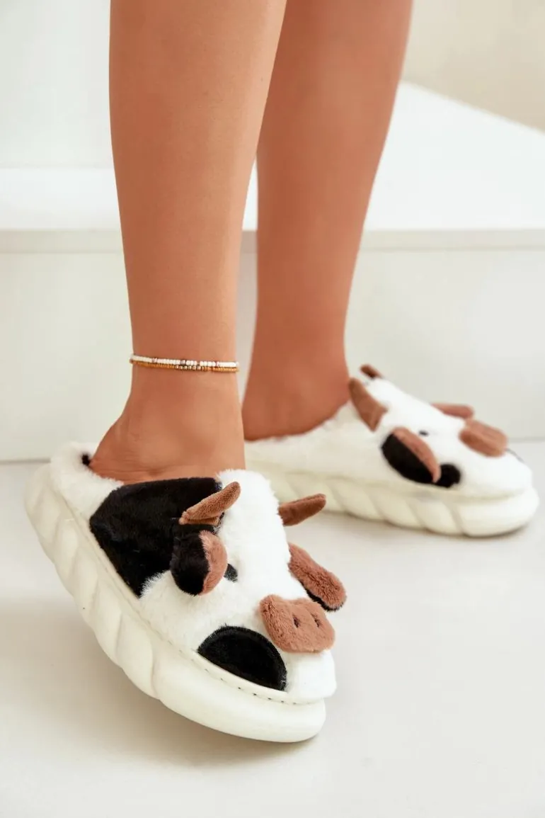 Damskie kapcie o miękkiej strukturze, ozdobione motywem krowy, stanowią znakomite połączenie komfortu i zabawnego wzoru. Wykonane z miłego w dotyku futerka, te kapcie są idealne na zimne wieczory, wnosząc styl i humor do domowego relaksu. Przy wyborze rozmiaru prosimy sugerować się tabelą rozmiarów.