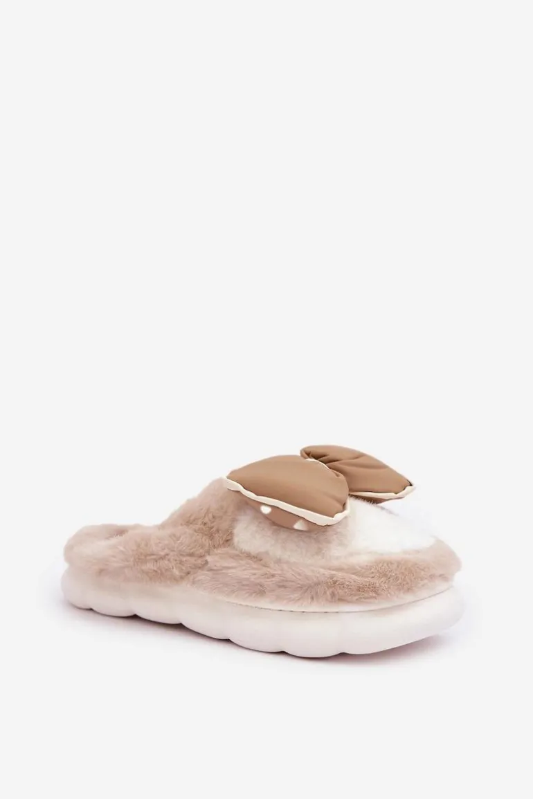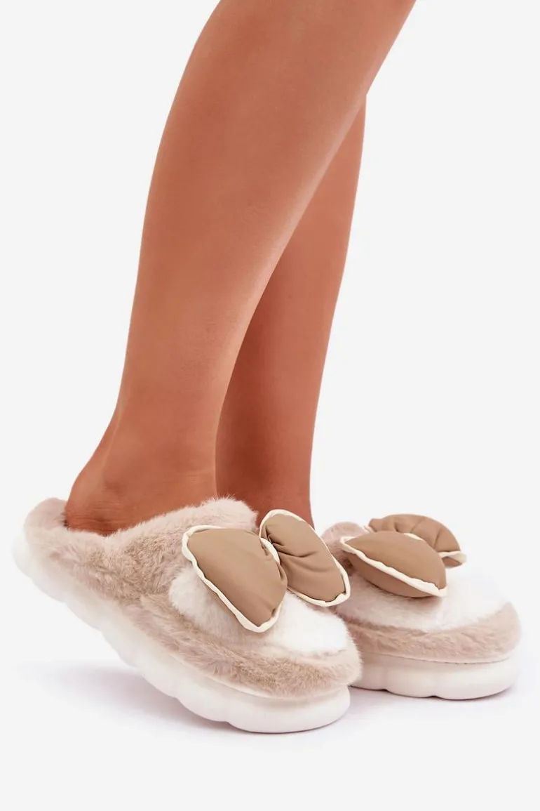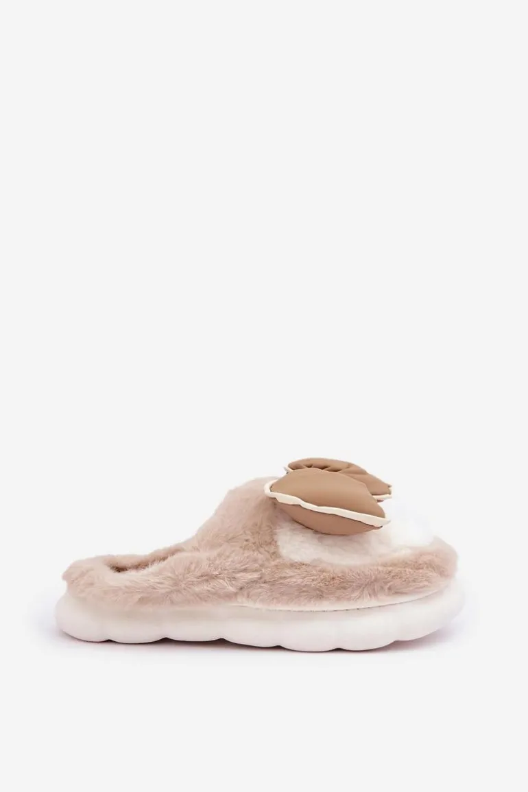 Kapcie damskie wykonane z miękkiego, przytulnego futerka, idealnie otulają stopy, zapewniając ciepło i komfort. Model osadzony na grubszej podeszwie, co dodaje stabilności i izoluje od chłodnego podłoża. Zakryte noski zapewniają dodatkową ochronę przed zimnem, czyniąc kapcie idealnym wyborem na chłodne dni. Przód ozdobiony kokardką, która nadaje wyjątkowego uroku. Stylowe i praktyczne! Przy wyborze rozmiaru prosimy sugerować się tabelą rozmiarów.