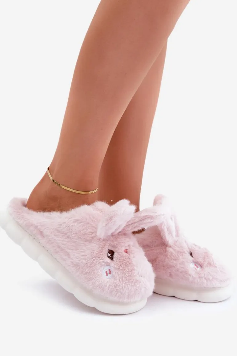 Futrzane Kapcie Z Motywem Króliczka Różowe Natasha
