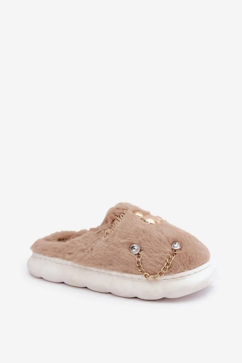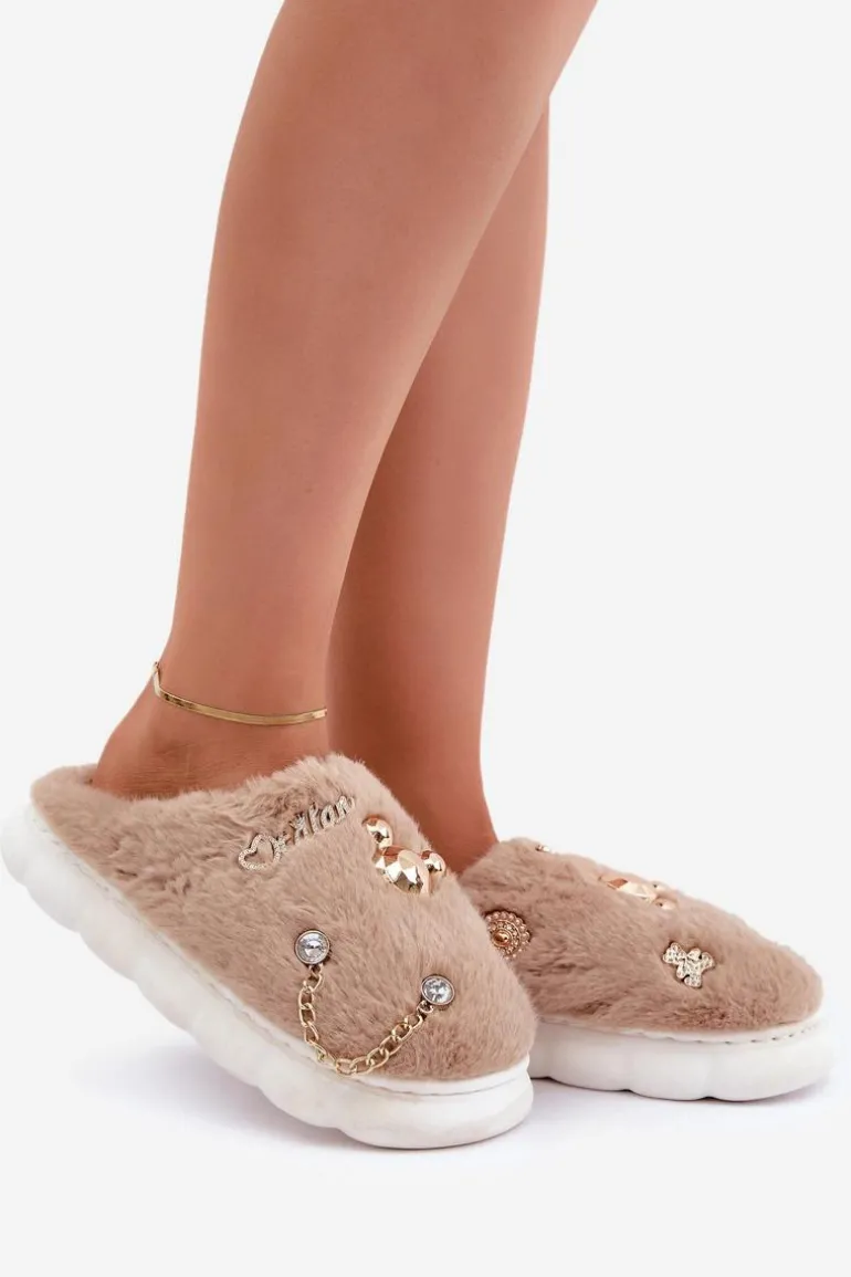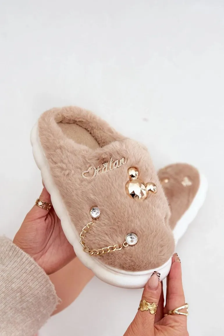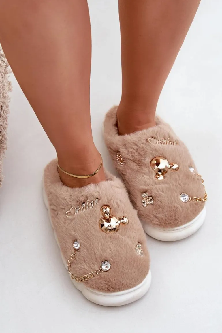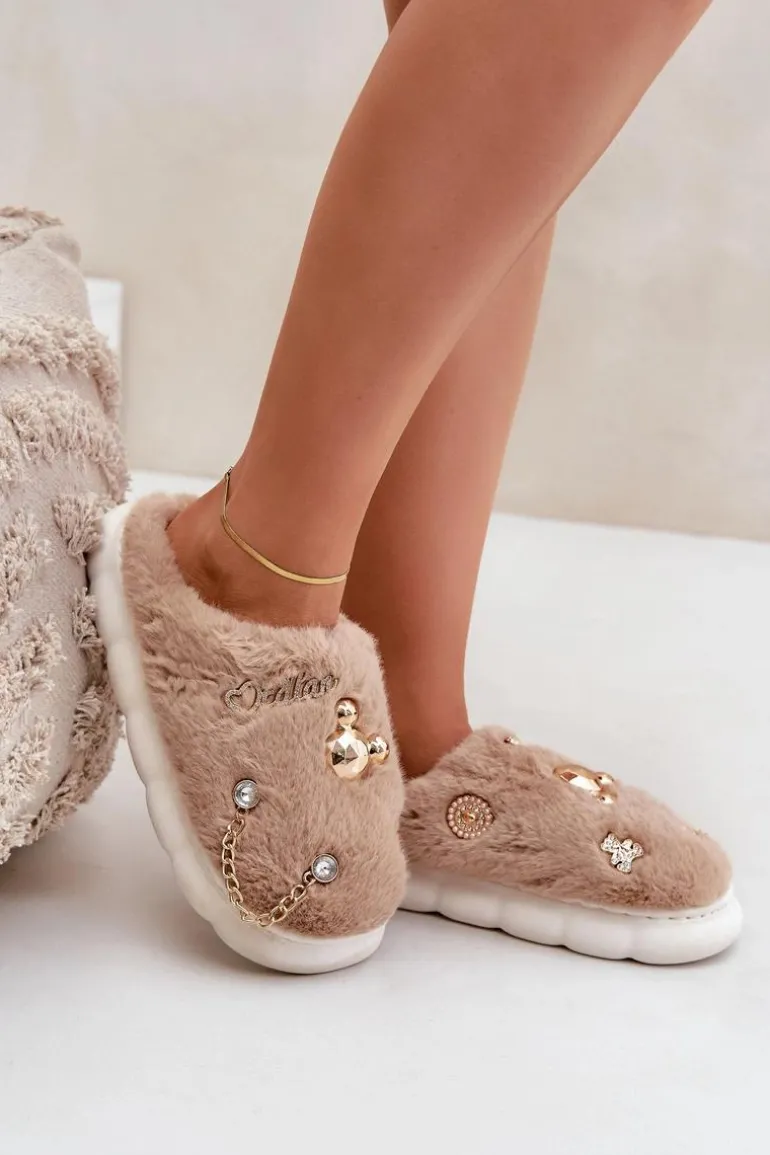 Futrzane Kapcie Z Przypinkami Ciemnobeżowe Ivelfedi