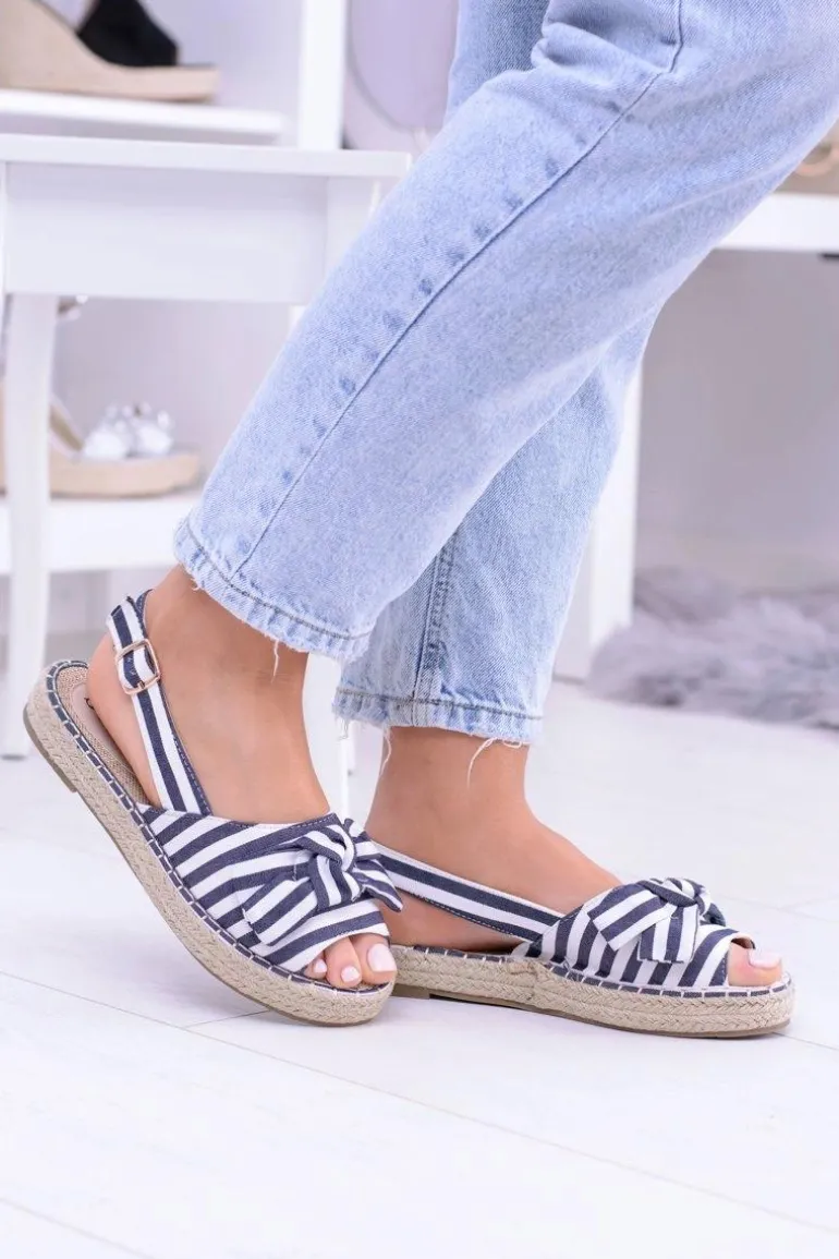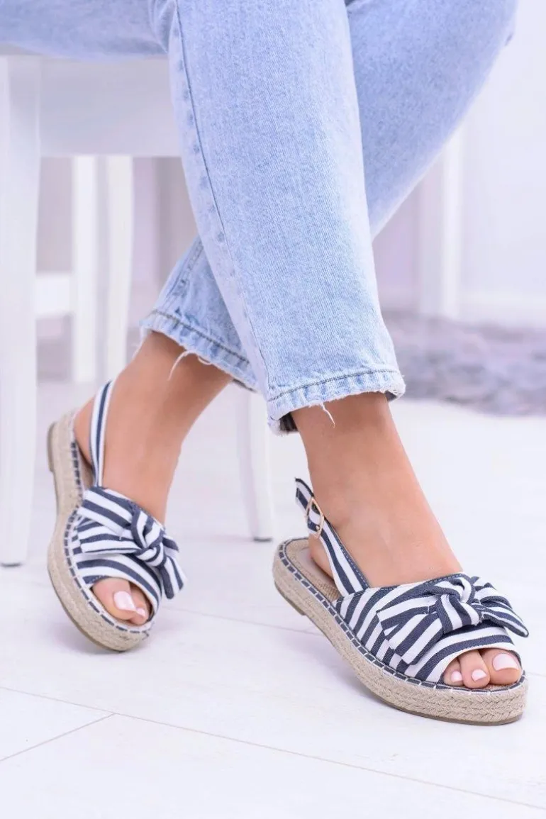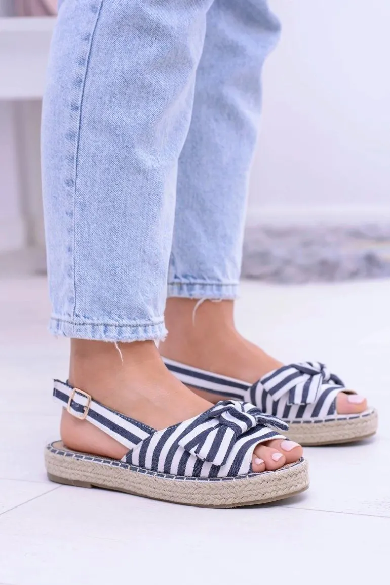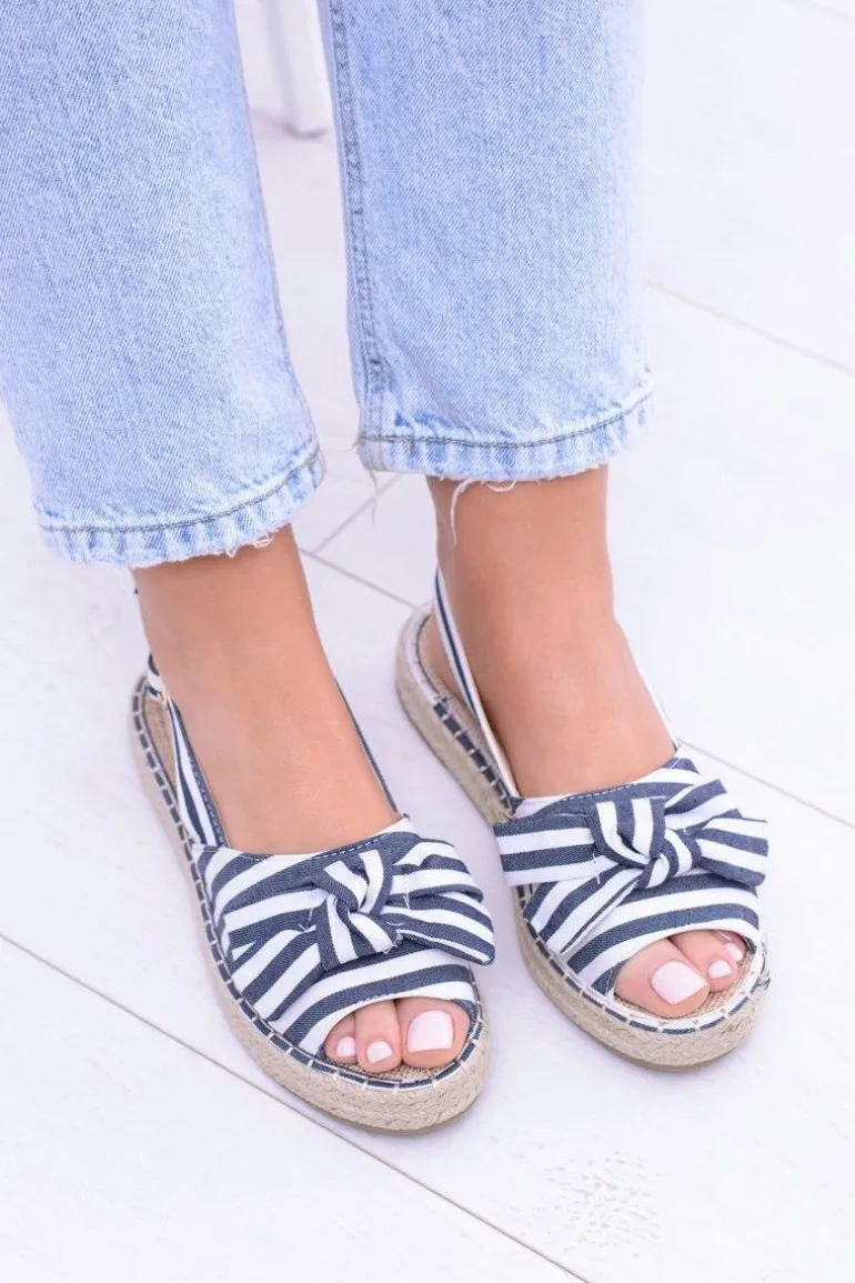 Granatowe Damskie Sandały Espadryle Kokardy Buni