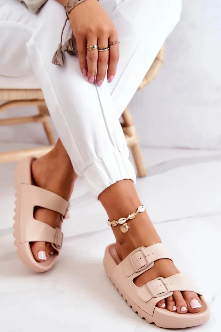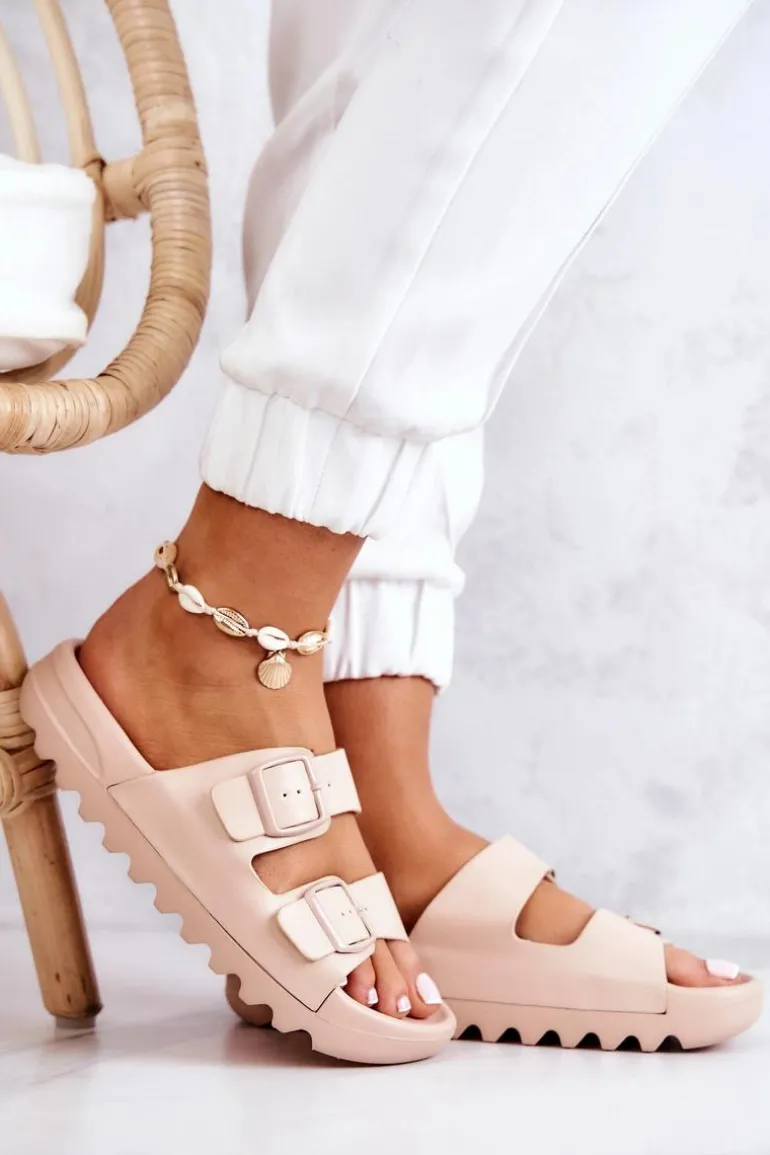 Gumowe Klapki Na Platformie Beżowe Westie