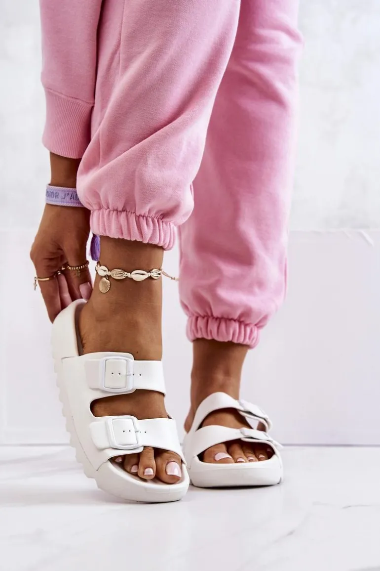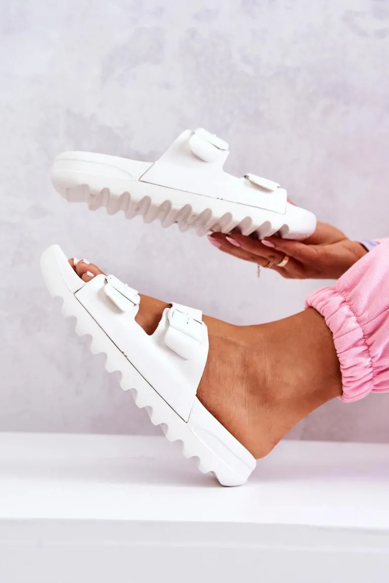 Gumowe Klapki Na Platformie Białe Westie