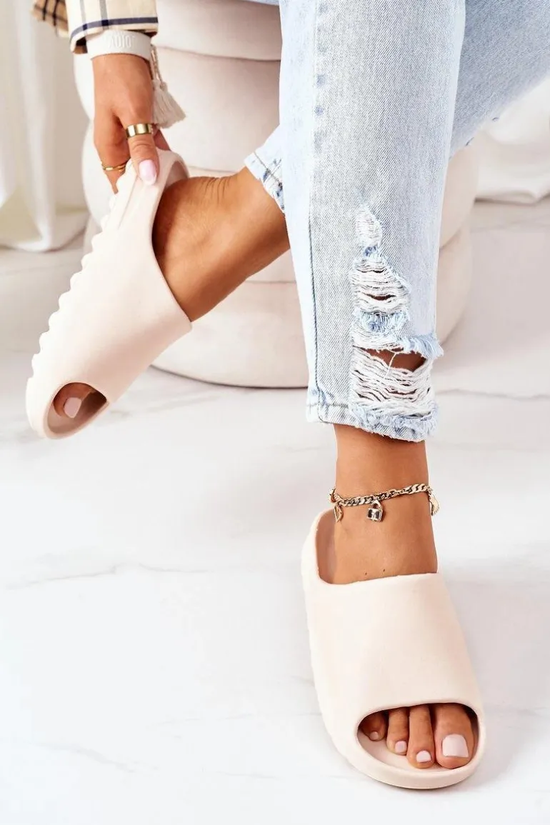 Wyjątkowe klapki wykonane z lekkiego, piankowego tworzywa. Buty posiadają delikatnie profilowaną wkładkę. Przy wyborze rozmiaru prosimy sugerować się tabelą rozmiarów.