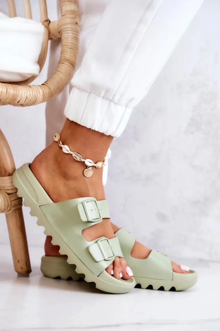 Gumowe Klapki Na Platformie Zielone Westie