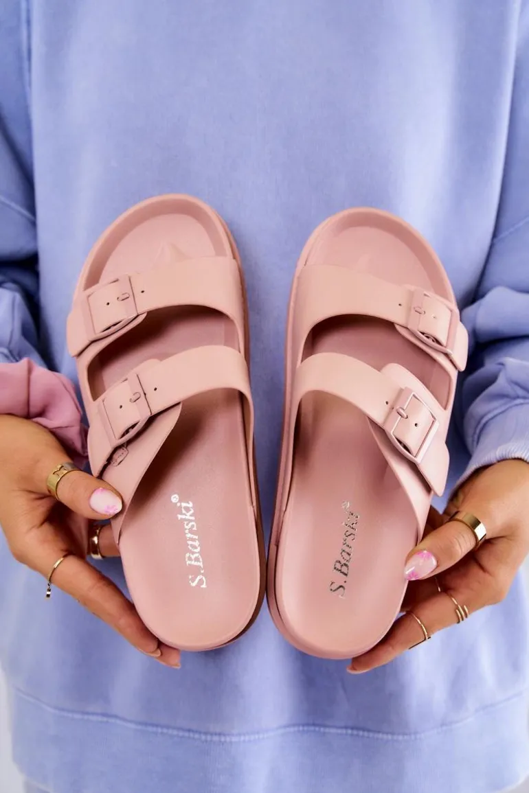 Gumowe Klapki Ze Sprzączką Różowe Corina