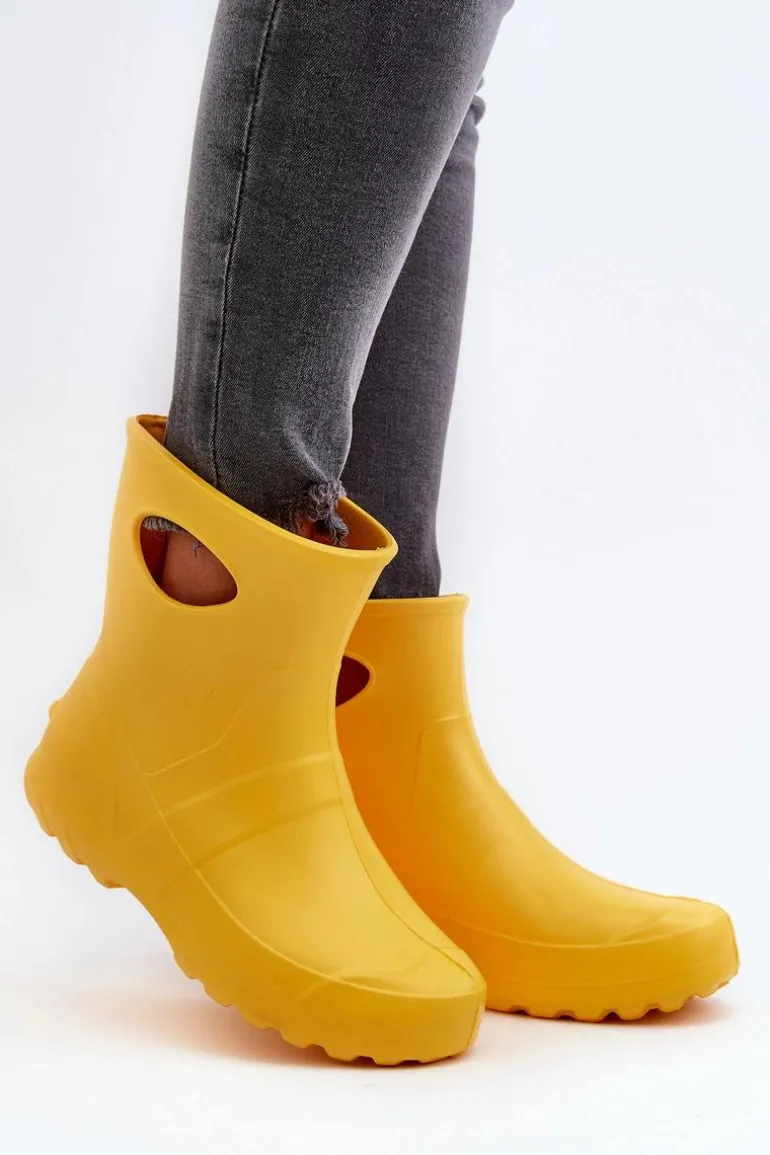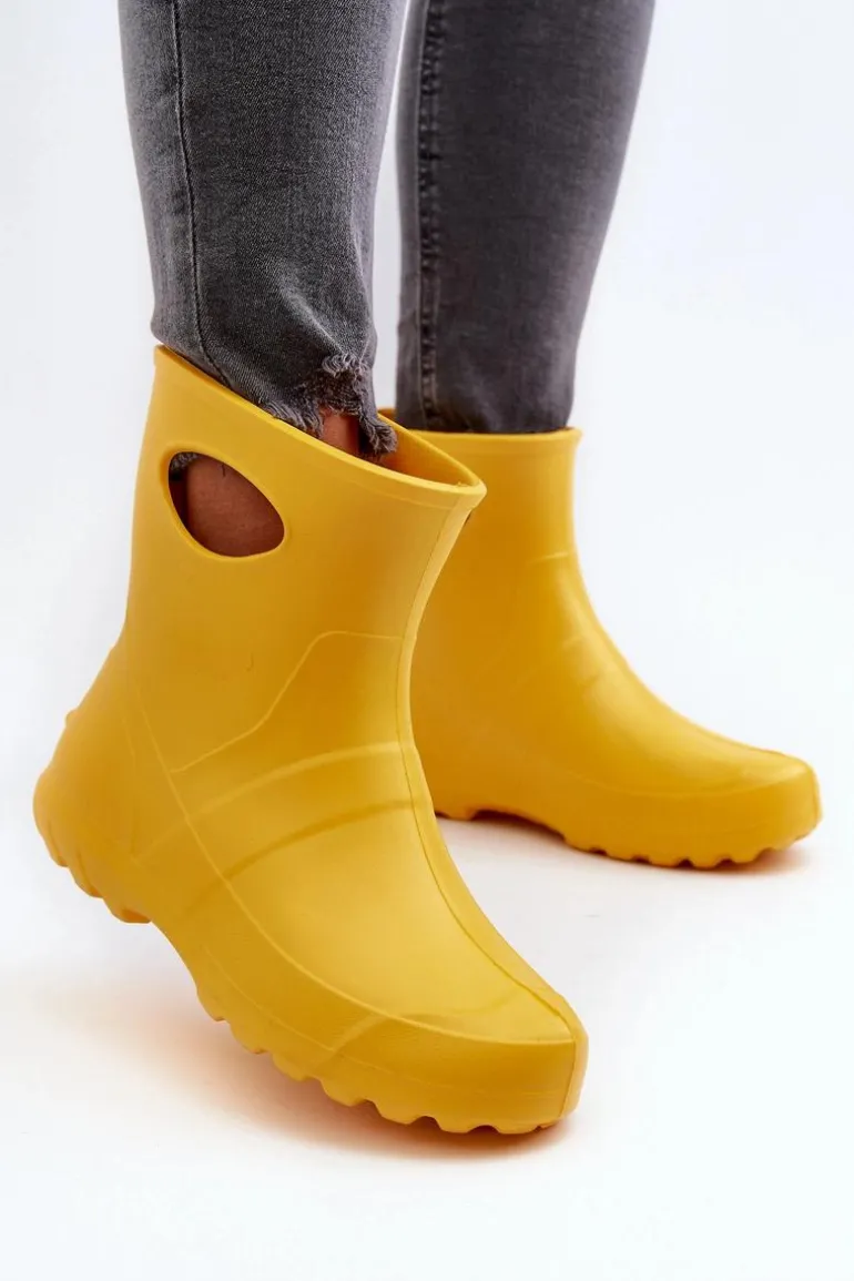 Lekkie i wodoszczelne kalosze to idealne obuwie na deszczowe dni. Wymienna wkładka, zapewnia dodatkową wygodę i izolację od zimna. Model ten posiada wycięcia, które ułatwiają zakładanie. Dodatkowo do obuwia dołączona jest peleryna przeciwdeszczowa. Koniecznie powinnaś je mieć! Przy wyborze rozmiaru prosimy sugerować się tabelą rozmiarów.