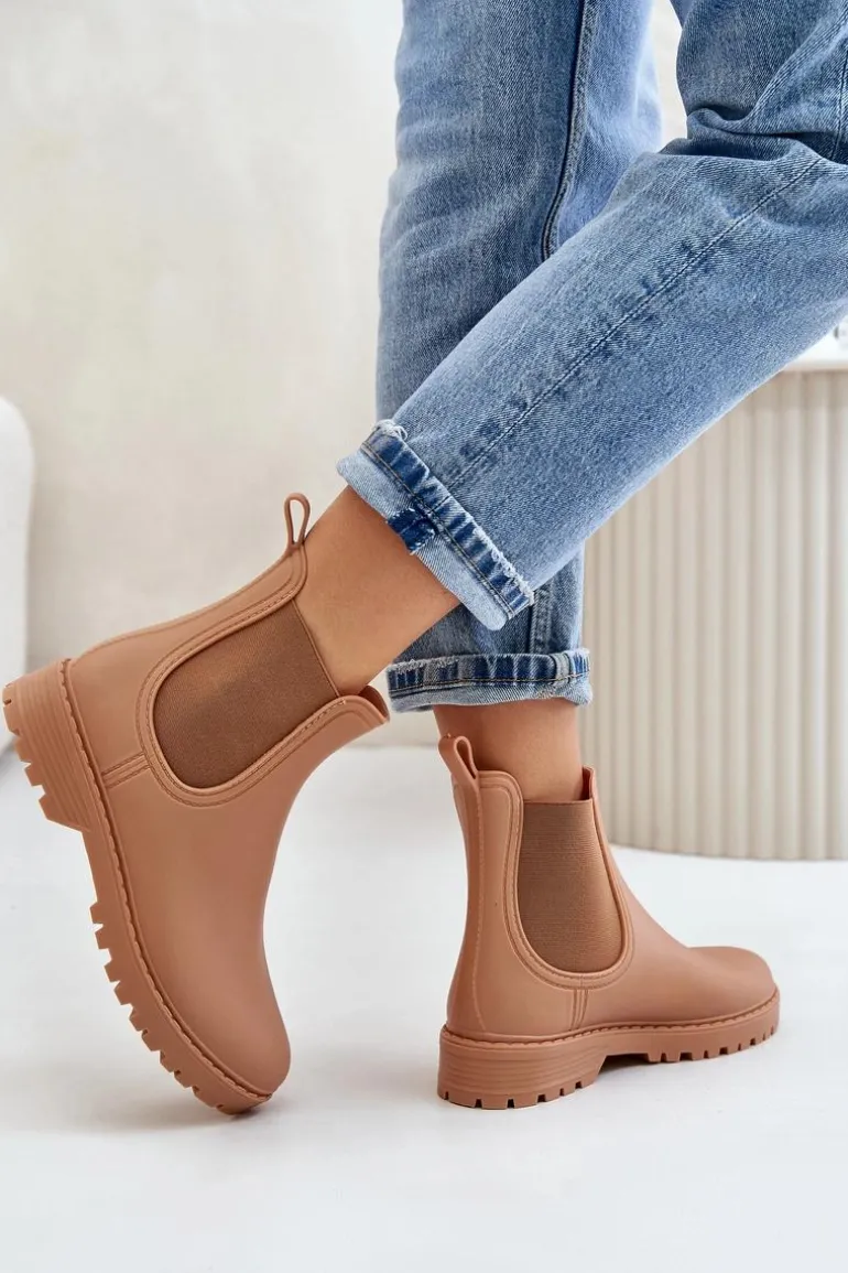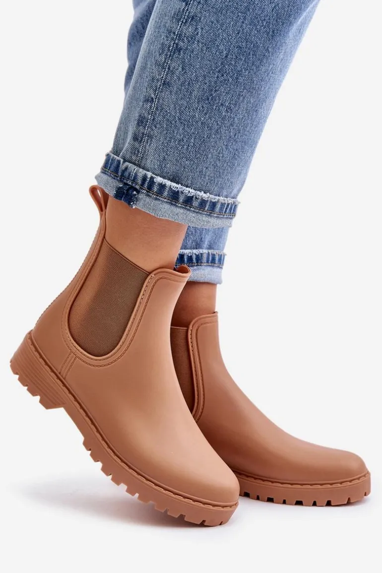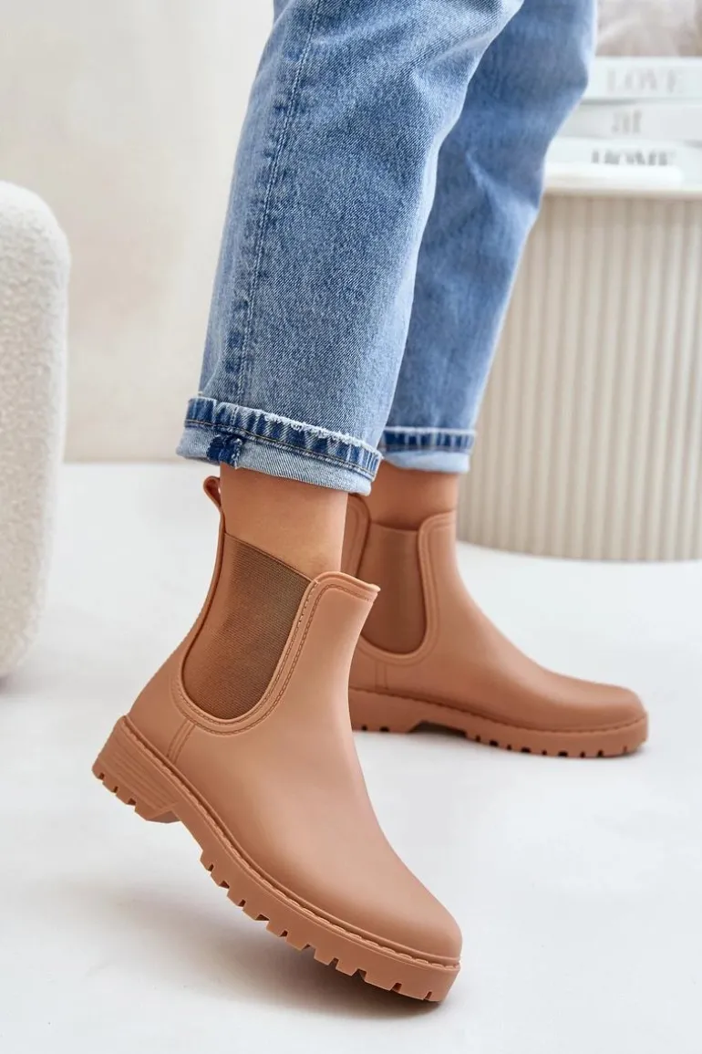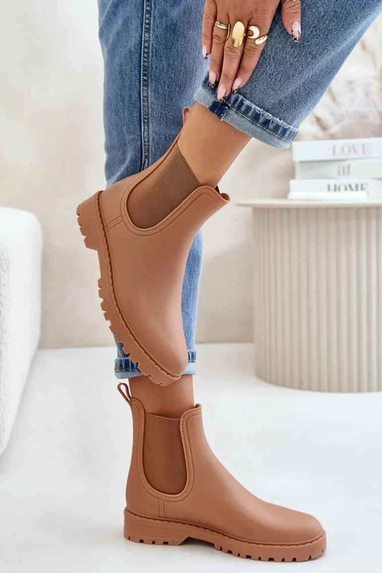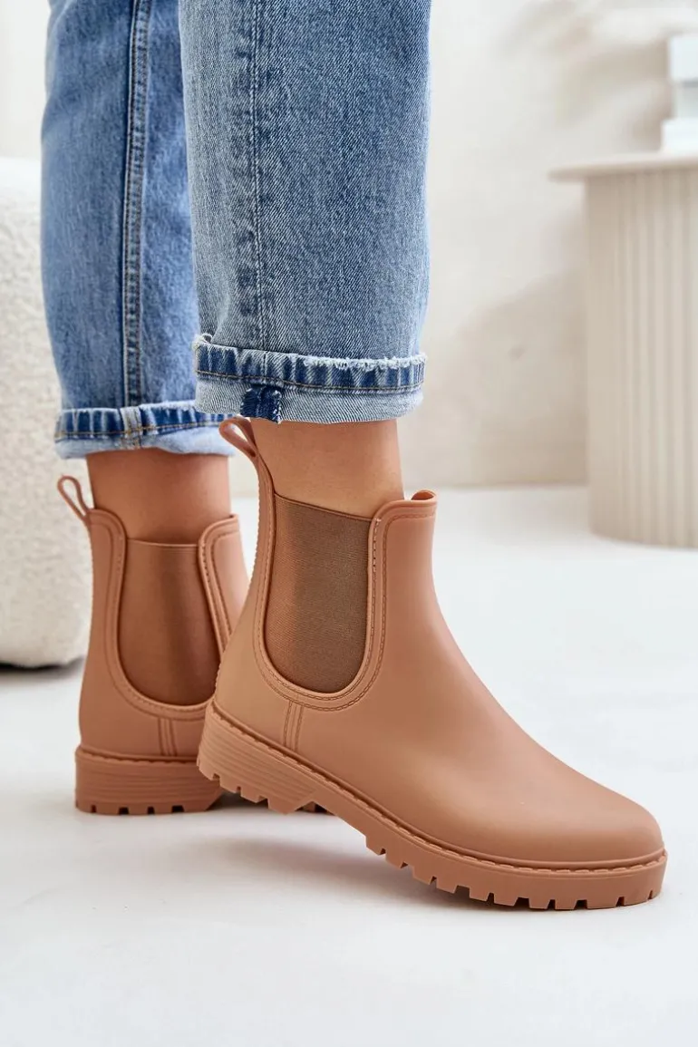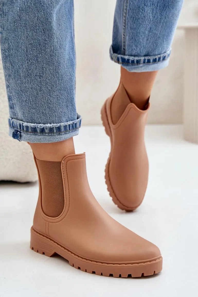 Kalosze Damskie Z Elastycznymi Wstawkami Brązowe Ciariel