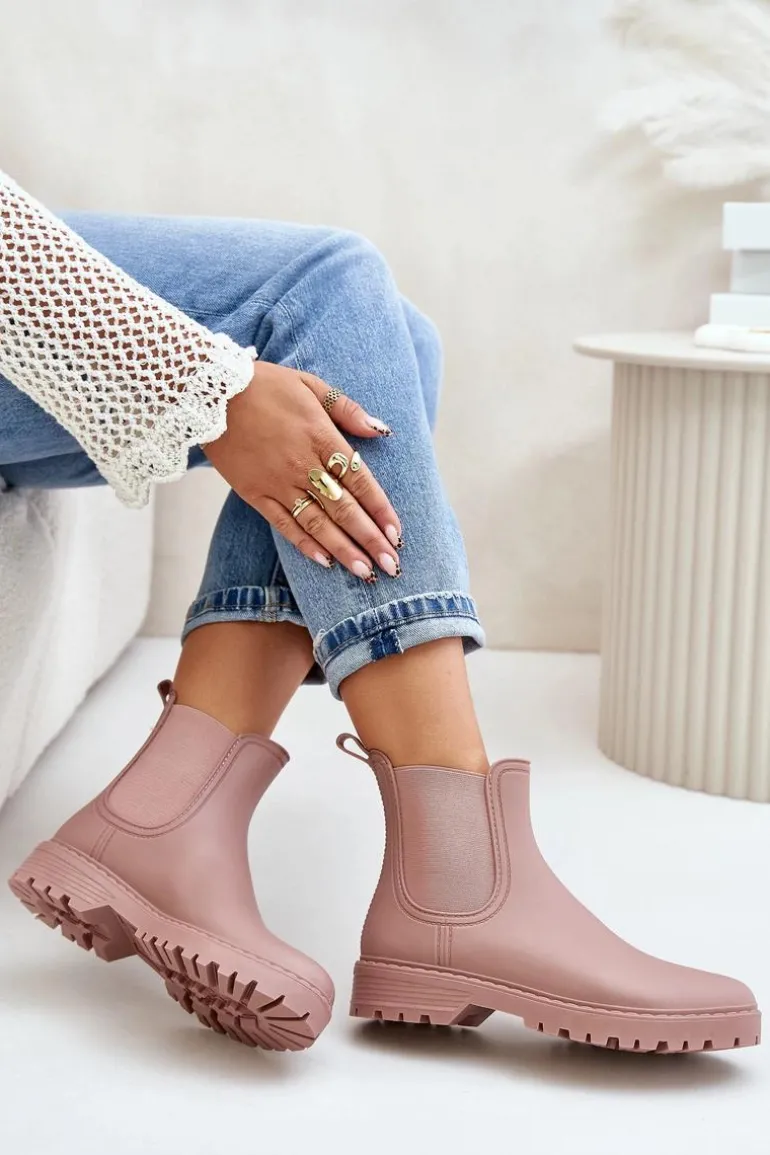 Damskie kalosze wsuwane, wykonane z wytrzymałego materiału. Posiadają elastyczne wstawki po bokach, które ułatwiają zakładanie i zapewniają wygodne dopasowanie do stopy. Idealne na deszczowe dni, te kalosze doskonale łączą funkcjonalność z modnym wyglądem. Przy wyborze rozmiaru prosimy sugerować się tabelą rozmiarów.