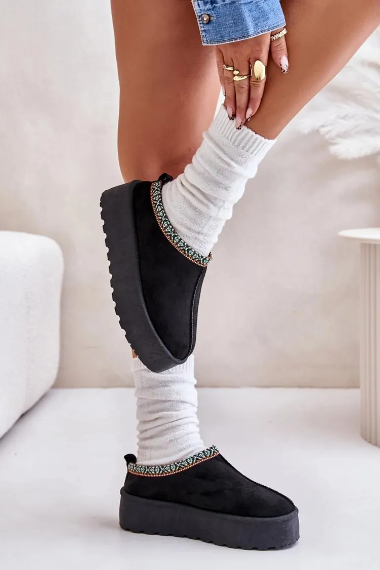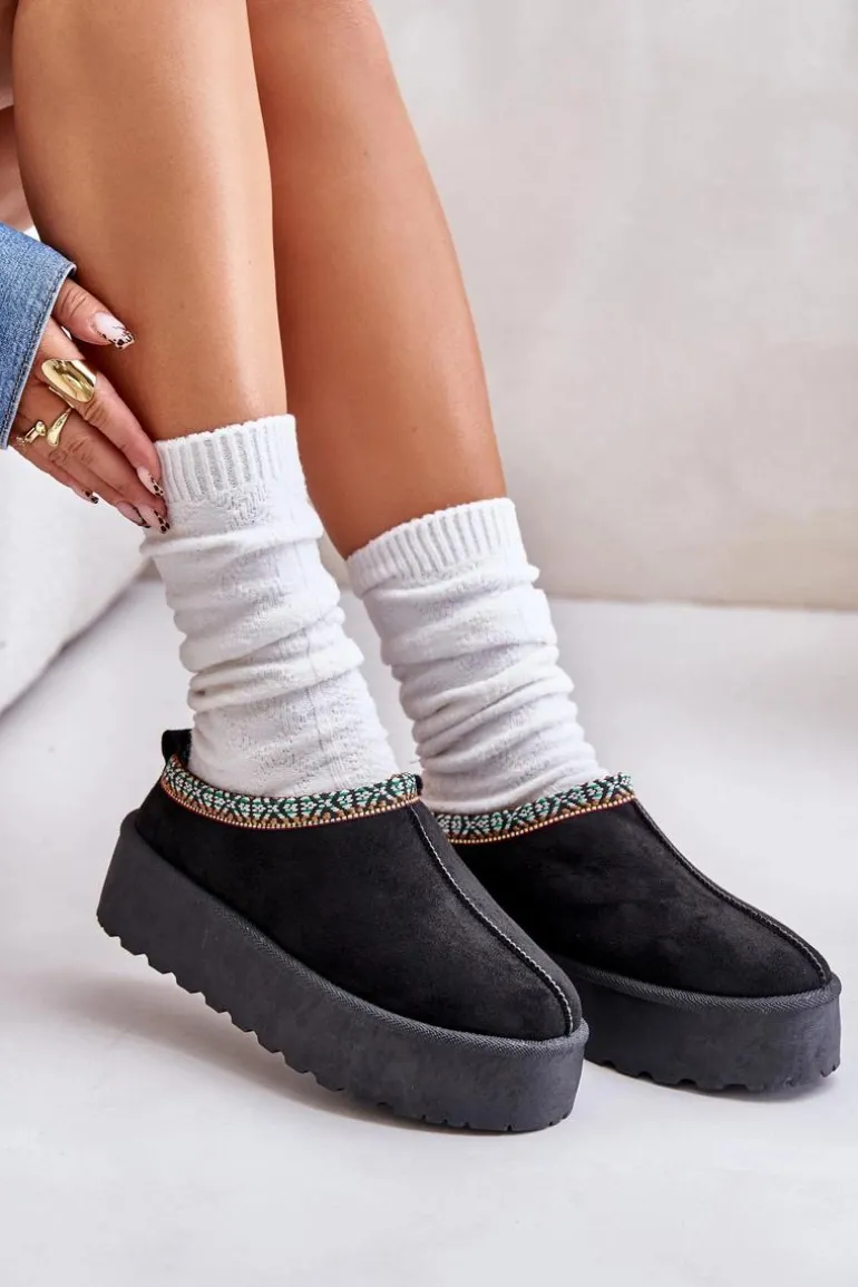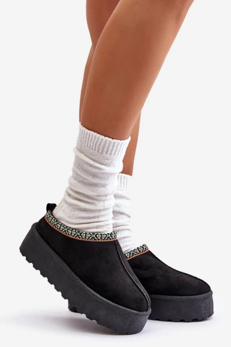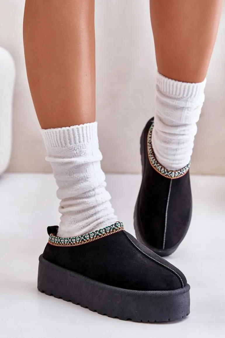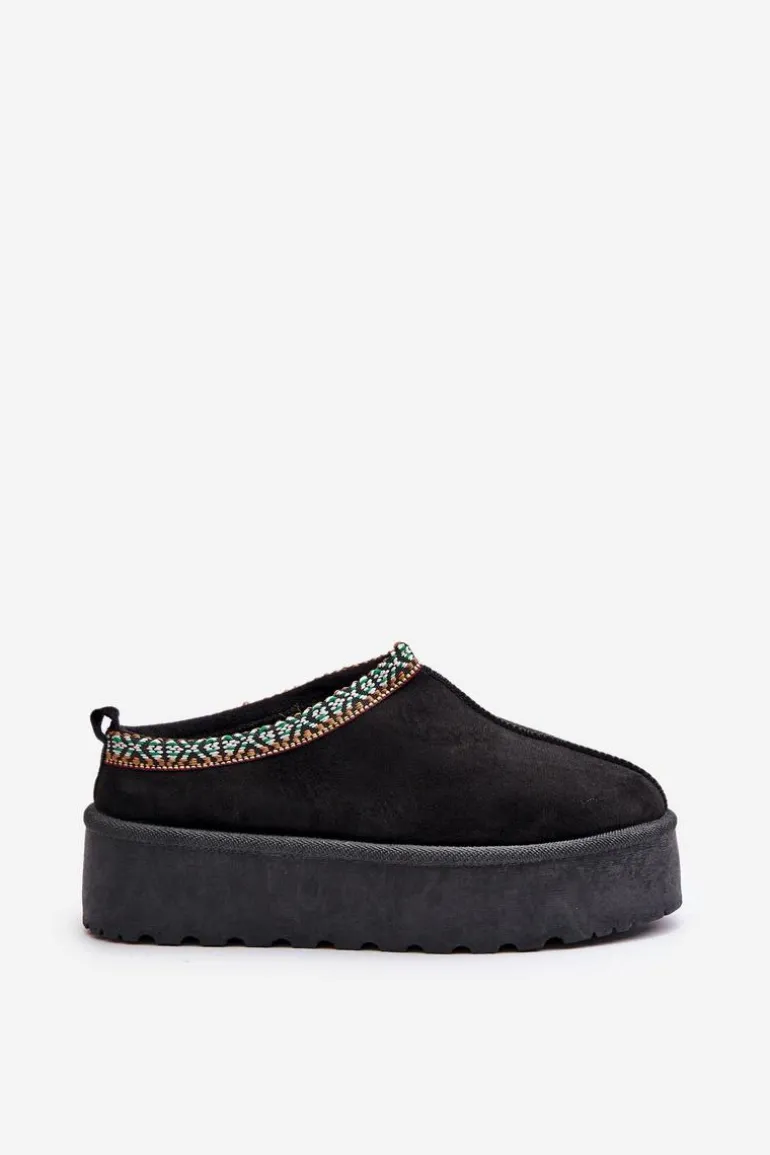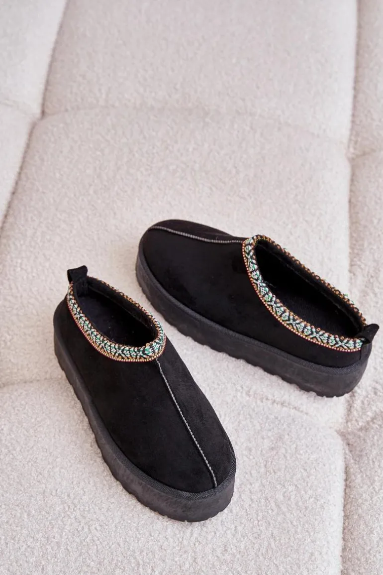 Kapcie Damskie Na Platformie Z Haftem Czarne Neroma