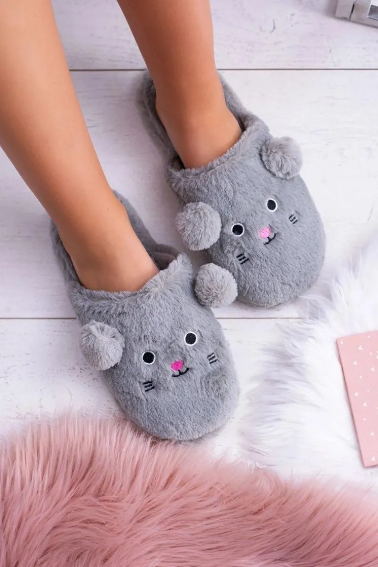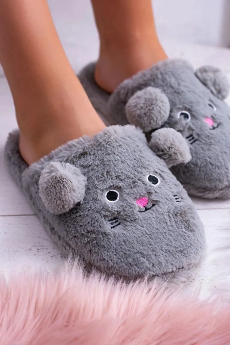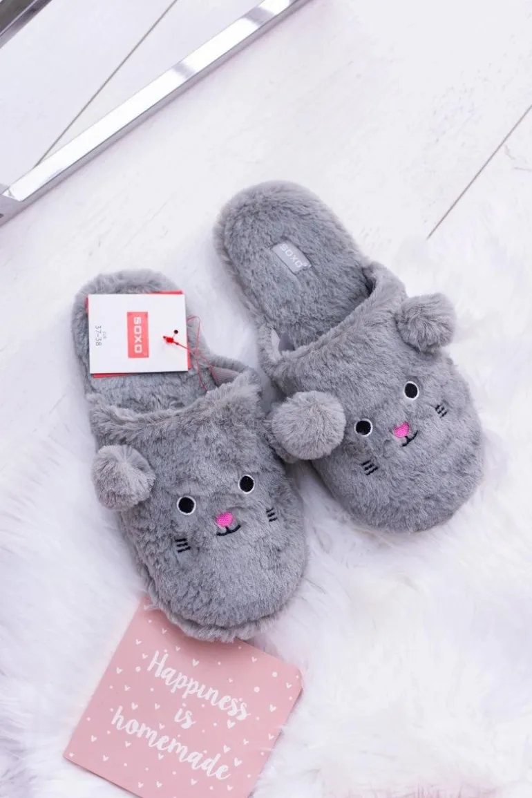 Kapcie Damskie SOXO Myszki z Uszami Szare