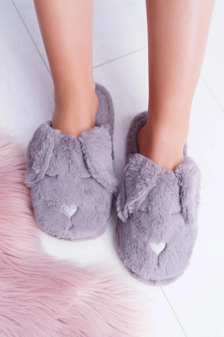 Kapcie Damskie SOXO Puchate Pieski z Uszami Szare