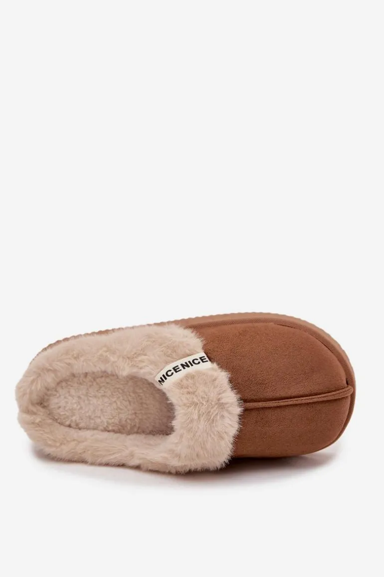 Kapcie damskie wykonane z miękkiej eko zamszowej tkaniny to idealna propozycja dla kobiet ceniących ciepło i wygodę. Model osadzony został na grubej podeszwie, która zapewnia stabilność oraz komfort podczas chodzenia po domu. Górną część ozdobiono przyjemnym w dotyku futerkiem i stylowym paseczkiem z napisem, co nadaje całości modnego i przytulnego charakteru. Wnętrze kapci zostało ocieplone, dzięki czemu doskonale chronią stopy przed chłodem. Przy wyborze rozmiaru prosimy sugerować się tabelą rozmiarów.