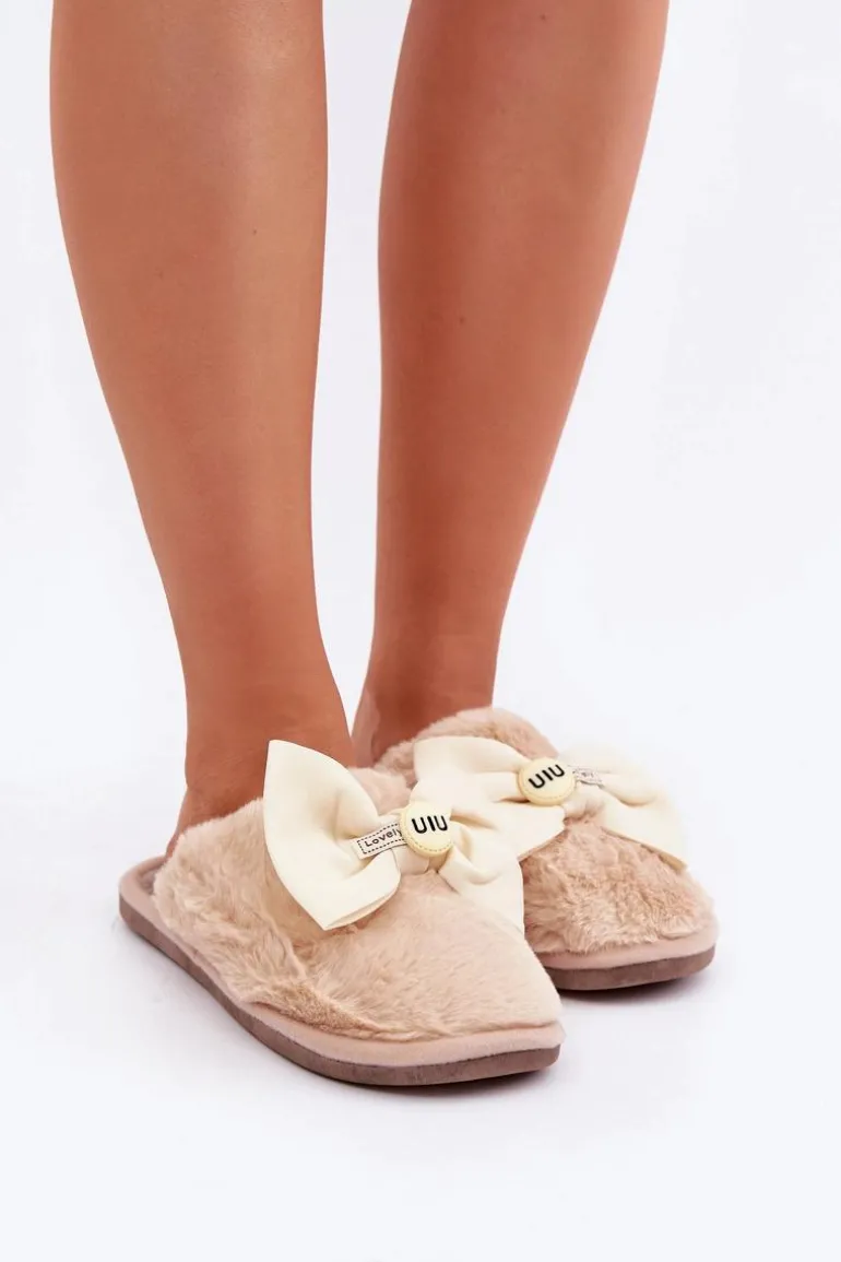Ciepłe kapcie damskie z miękkim futerkiem i uroczą kokardą, które zapewnią komfort i przytulność w chłodne wieczory. Doskonałe na relaks przed telewizorem, łączą funkcjonalność z uroczym, kobiecym stylem. Idealne do noszenia w domu, zapewniając ciepło i wygodę! .Przy wyborze rozmiaru prosimy sugerować się tabelą rozmiarów.