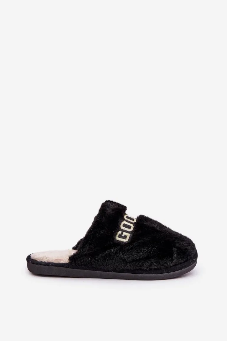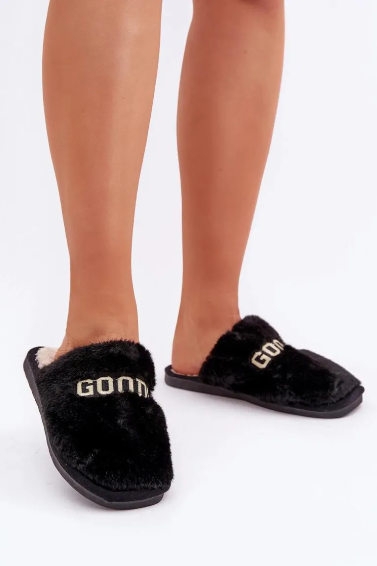 Kapcie damskie wykonane z miękkiego futerka, które zapewnia wyjątkowy komfort i ciepło. Model ozdobiony stylowym napisem, który dodaje nowoczesnego charakteru. Idealne na chłodne dni, doskonale sprawdzą się jako wygodne obuwie domowe, łącząc funkcjonalność z modnym wyglądem. Przy wyborze rozmiaru prosimy kierować tabelą rozmiarów.