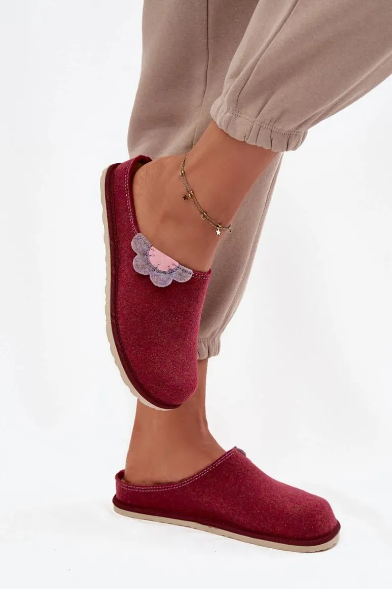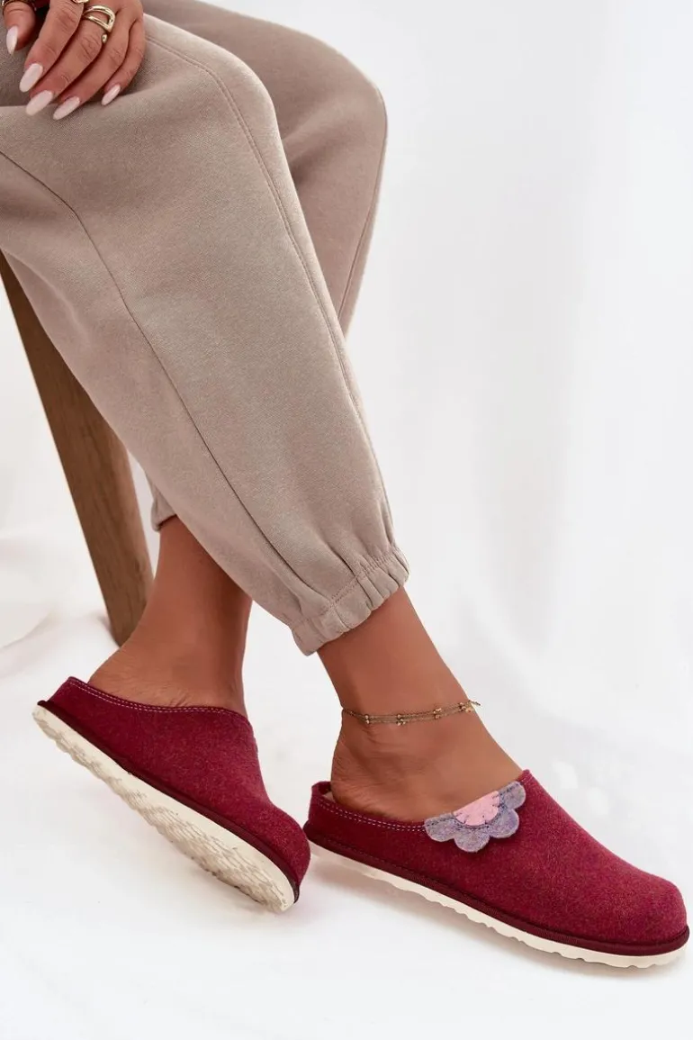 Damskie kapcie marki Inblu to wygodne i lekkie obuwie domowe, stworzone z myślą o codziennym komforcie. Wykonane z filcowej tkaniny. Model z szerokimi, zakrytymi noskami gwarantuje swobodę ruchów, a elastyczna podeszwa dba o stabilność i wygodę podczas chodzenia. Profilowana wkładka z naturalnej skóry wspiera prawidłowe ułożenie stopy i zwiększa komfort użytkowania. Całość dopełnia subtelna ozdoba w postaci kwiatka. To klasyczne, praktyczne kapcie, które łączą funkcjonalność z wysoką jakością wykonania. Przy wyborze rozmiaru prosimy kierować tabelą rozmiarów.