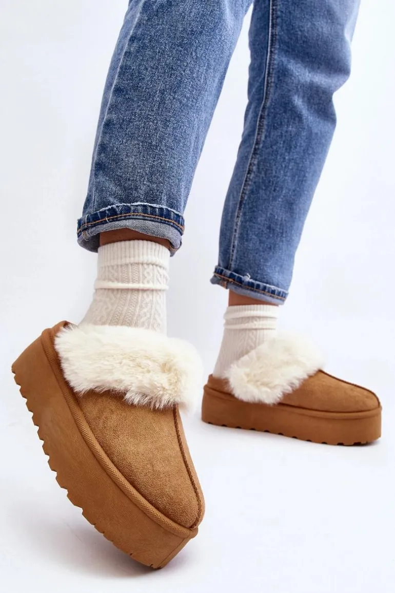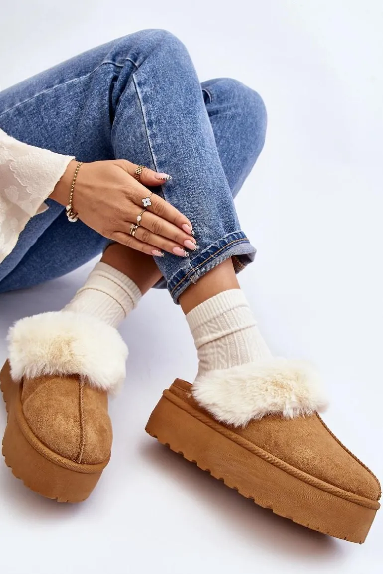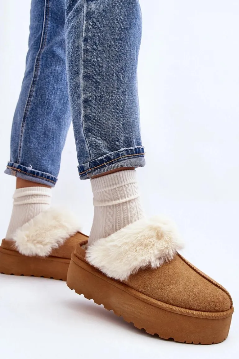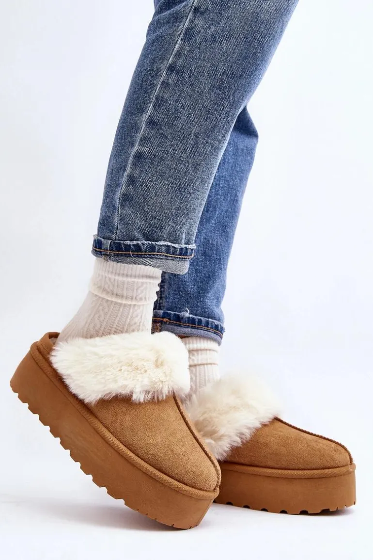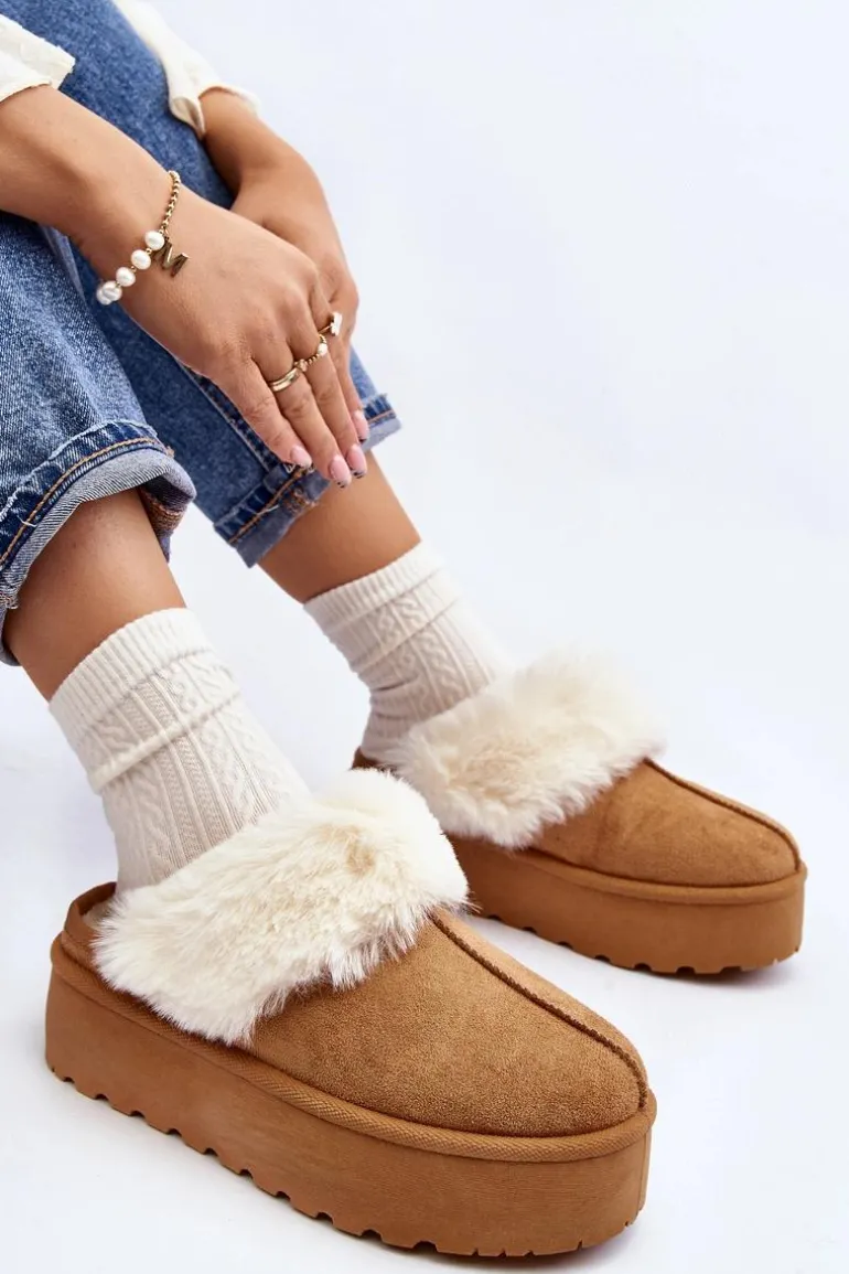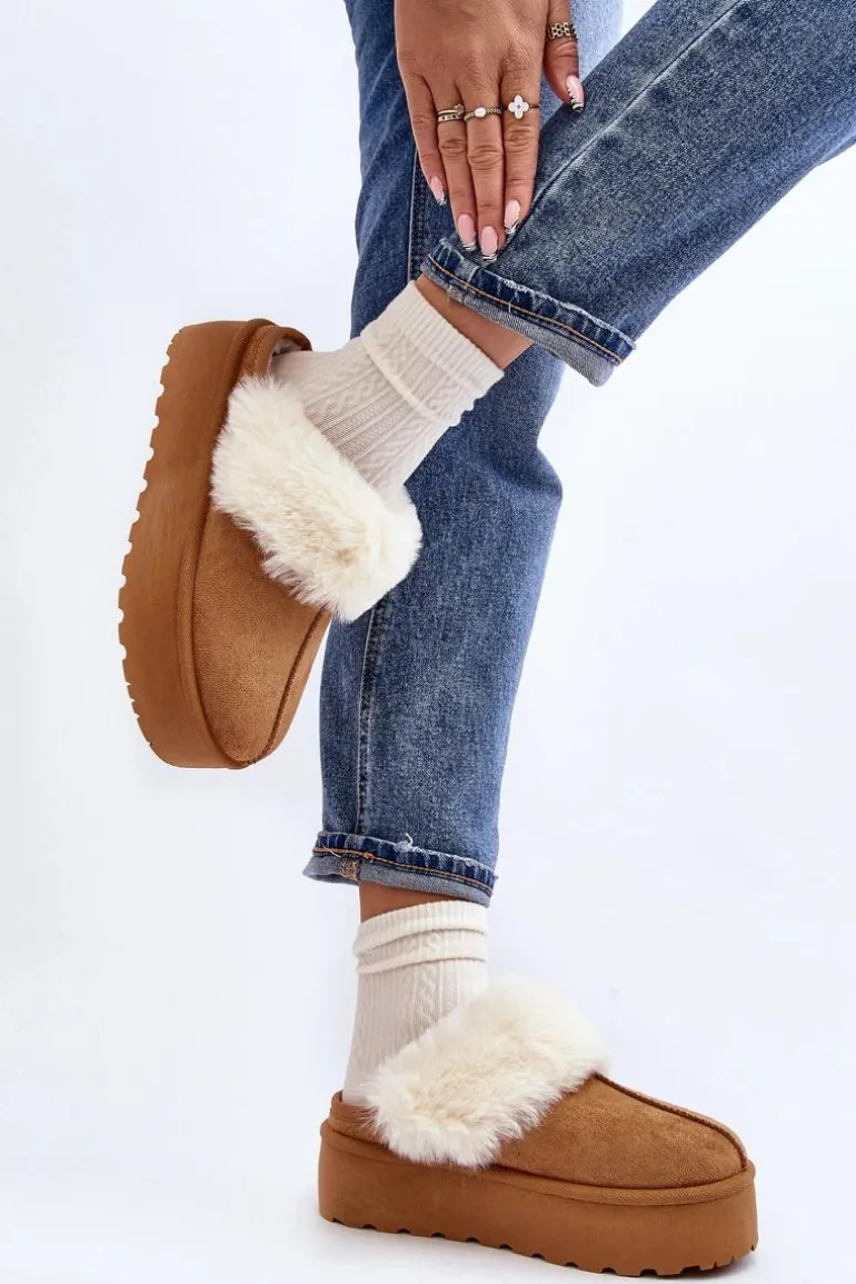 Kapcie Śniegowce Damskie Na Grubej Podeszwie Camel Starlyn