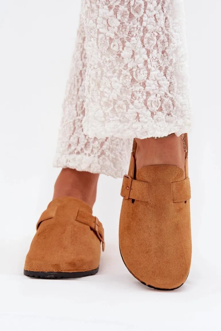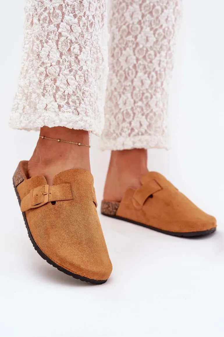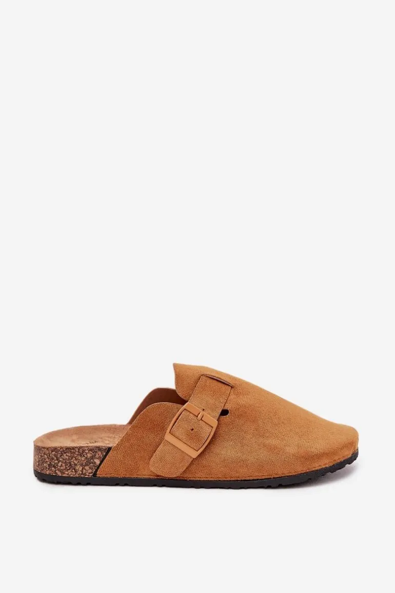 Klapki Chodaki Damskie i Na Korkowej Platformie Z Klamrą Camel Klarae